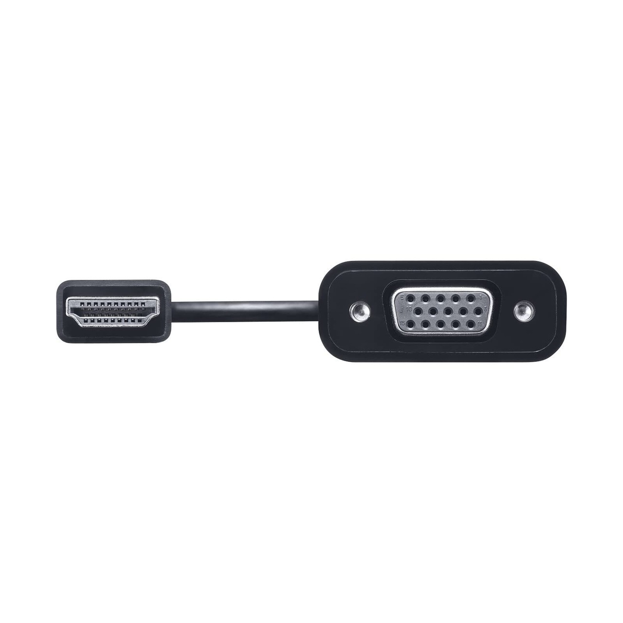 HDMI出力を持つ機器の映像信号をVGAコネクタ(ミニD-Sub(HD)15pin)に変換するケーブル一体型の変換アダプタです。※ディスプレイ側のHDMIコネクタをVGAコネクタ(ミニD-sub(HD)15pin)に変換することはできません。