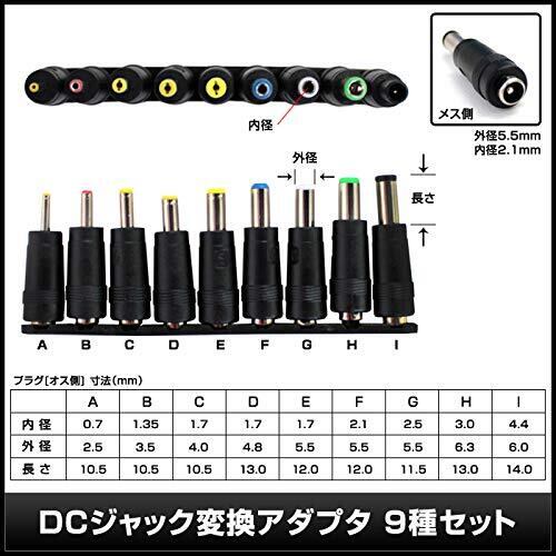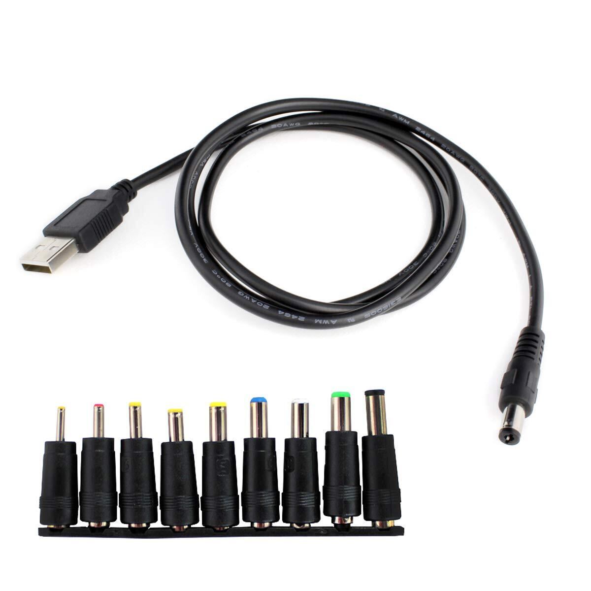 Kaito Denshi(海渡電子) USB DCプラグ DCジャック 5V オス 外径5.5mm × 内径2.1mm ケーブル1m 変換 アダプタ 9種類セット