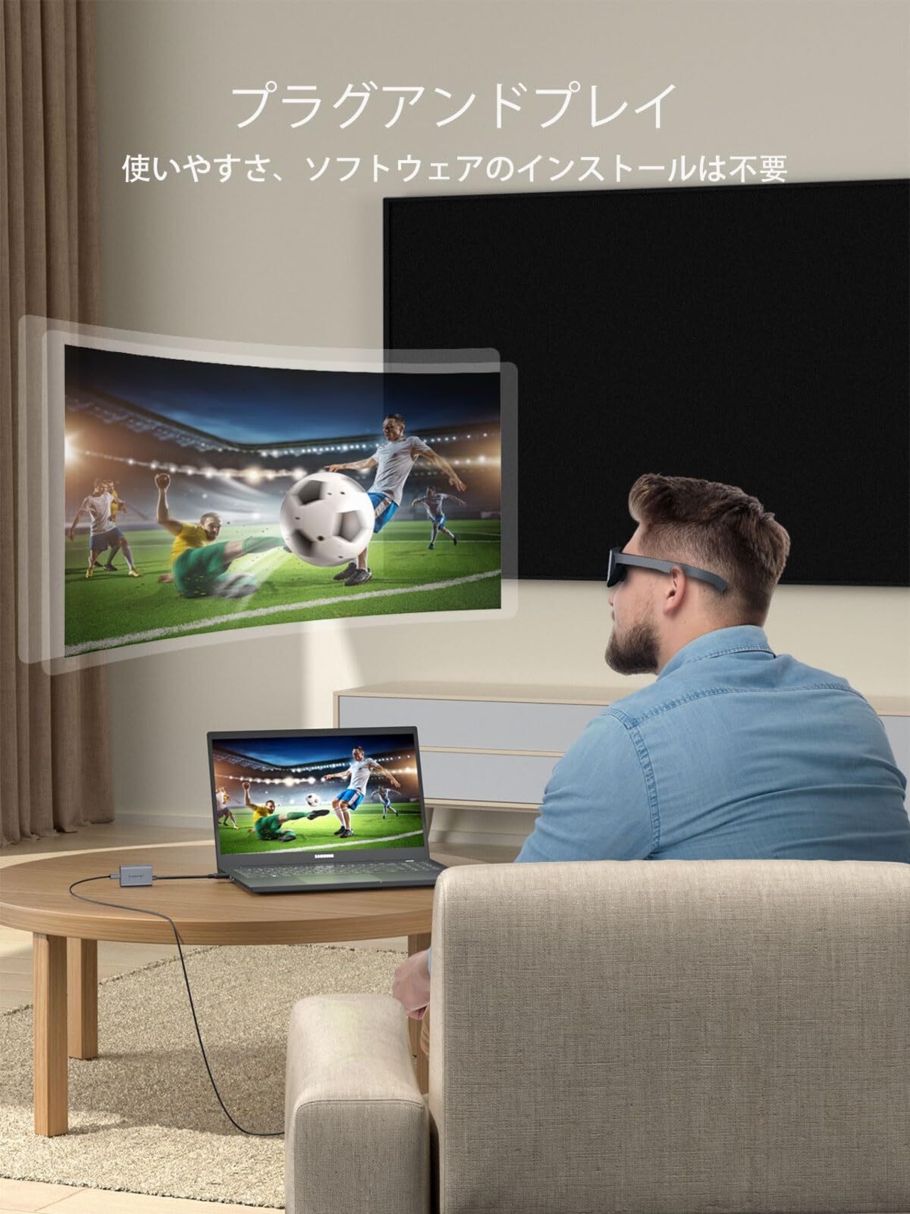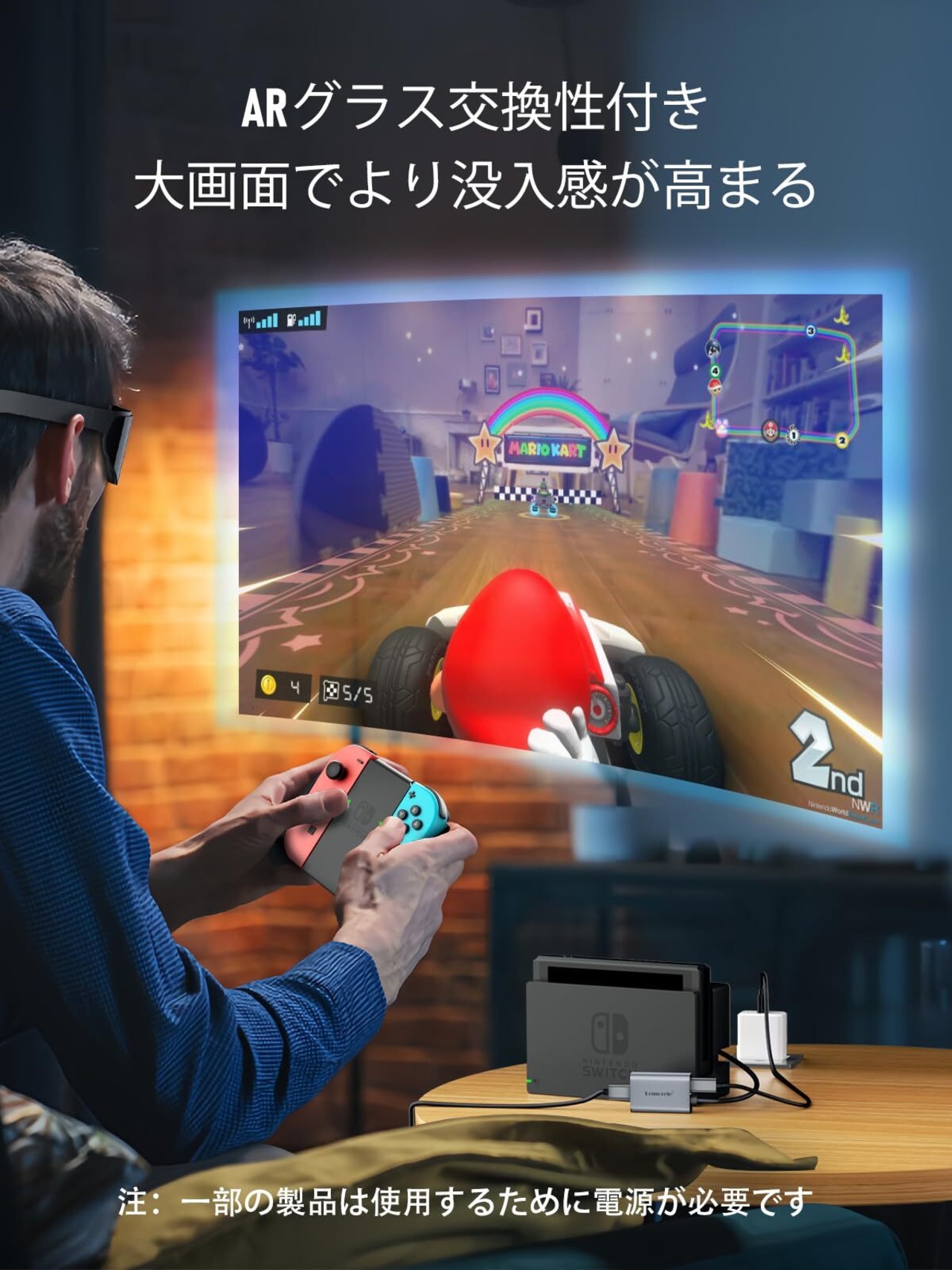 【簡単なプラグ&プレイ】複雑な設定やソフトウェアのインストールなしでプラグアンドプレイ。 USB-Cポートのビデオ出力を処理するように設計されており、USB C ポートは Xreal Air、VITURE One、Rokid Air、Thunderbird AR、Sonny およびその他の AR グラスと互換性があり、HDMI ポートは PC、Switch、Steam Deck、Xbox、PS5、PS4、Google TVなどのHDMIポート搭載機器。