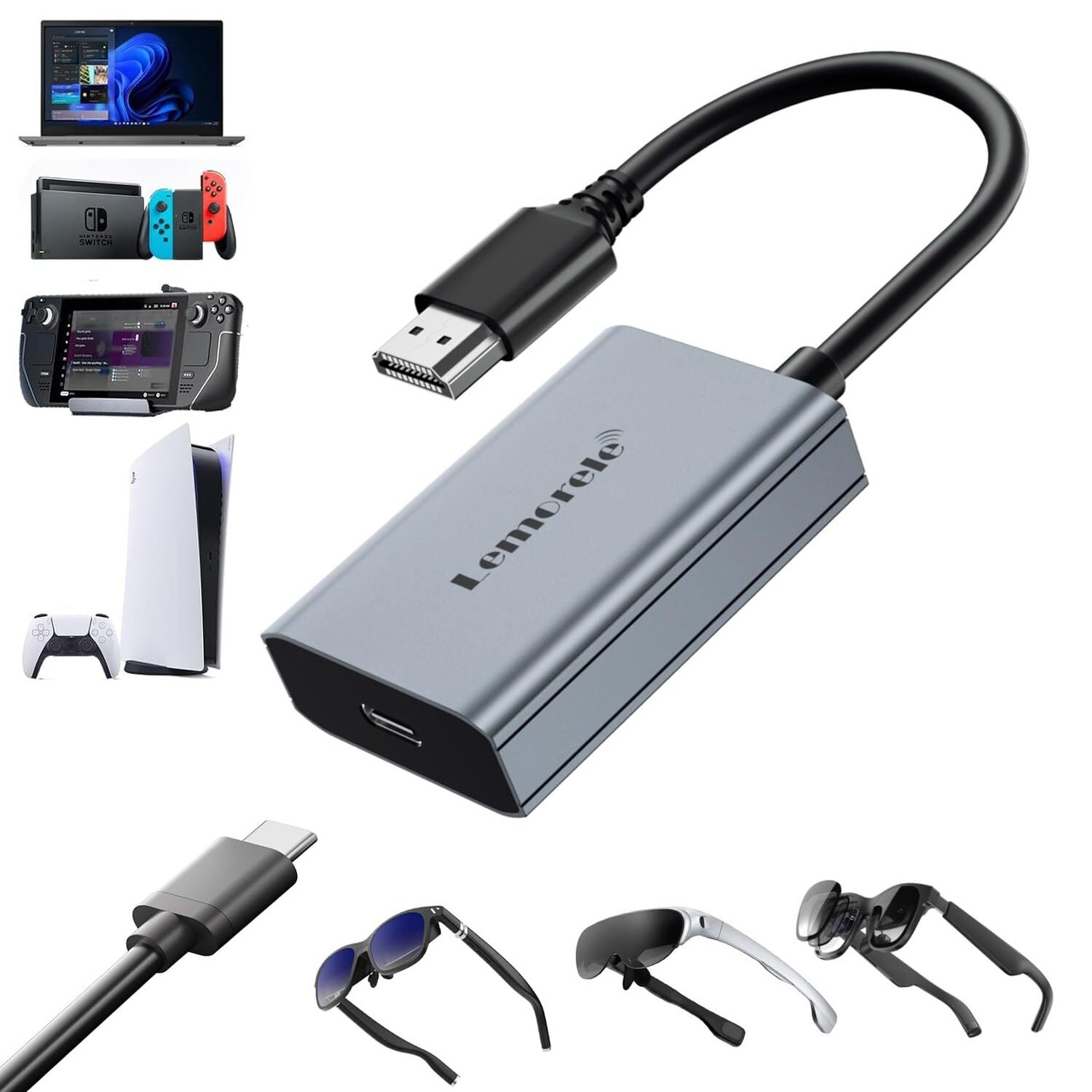 HDMI to USB C 交換アダプター 4K@60Hz Xreal One hub/VITURE One AR/RayNeoスマートグラス モニター拡張 変換アダプターHDMI 交換 Adapter ARグラス Xreal Air2 pro/Rokid Air max/Switch/Steam deck/PS4/5 /ROG ALLYゲーム機対応 アルミ合金筐体