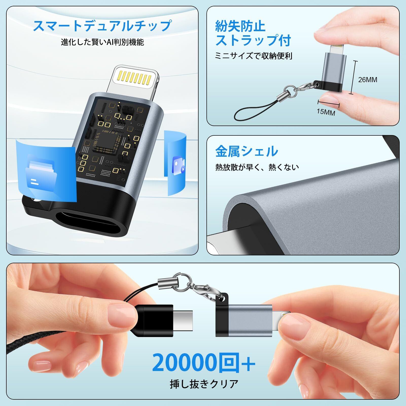 Ocbuo タイプCからライトニング変換 Type C Lightning変換アダプタ 防紛失ストラップ付 27WPD急速充電/高速データ転送 USB C(メス)-Lightning(オス)コネクタ c to lightning変換コネクタ アルミ合金外装 タイプCからiOS変換用 Phone14/13/12・Pad・AirPodsなどiOS機器対応
