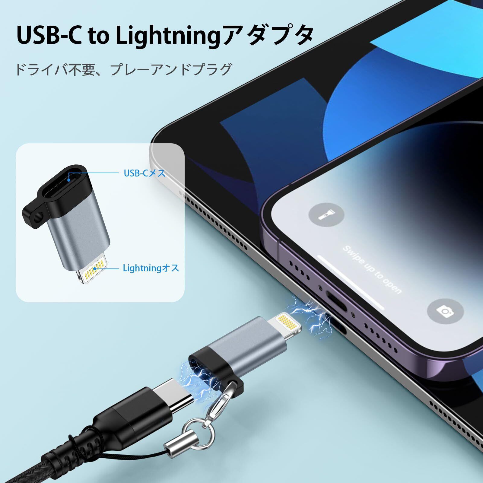 【USB-C to ライトニング変換アダプタ】USB-Cケーブルを挿すだけで瞬時にLightningケーブルに変身!Phone(14/13/12/11/XS/XR/SE/8シリーズ等)、Pad、PodなどのLightning搭載Appleデバイスへの充電とデータ転送(最大480Mbps)を可能にします。ドライバ不要・裏表なしで誰でも簡単に使えます。