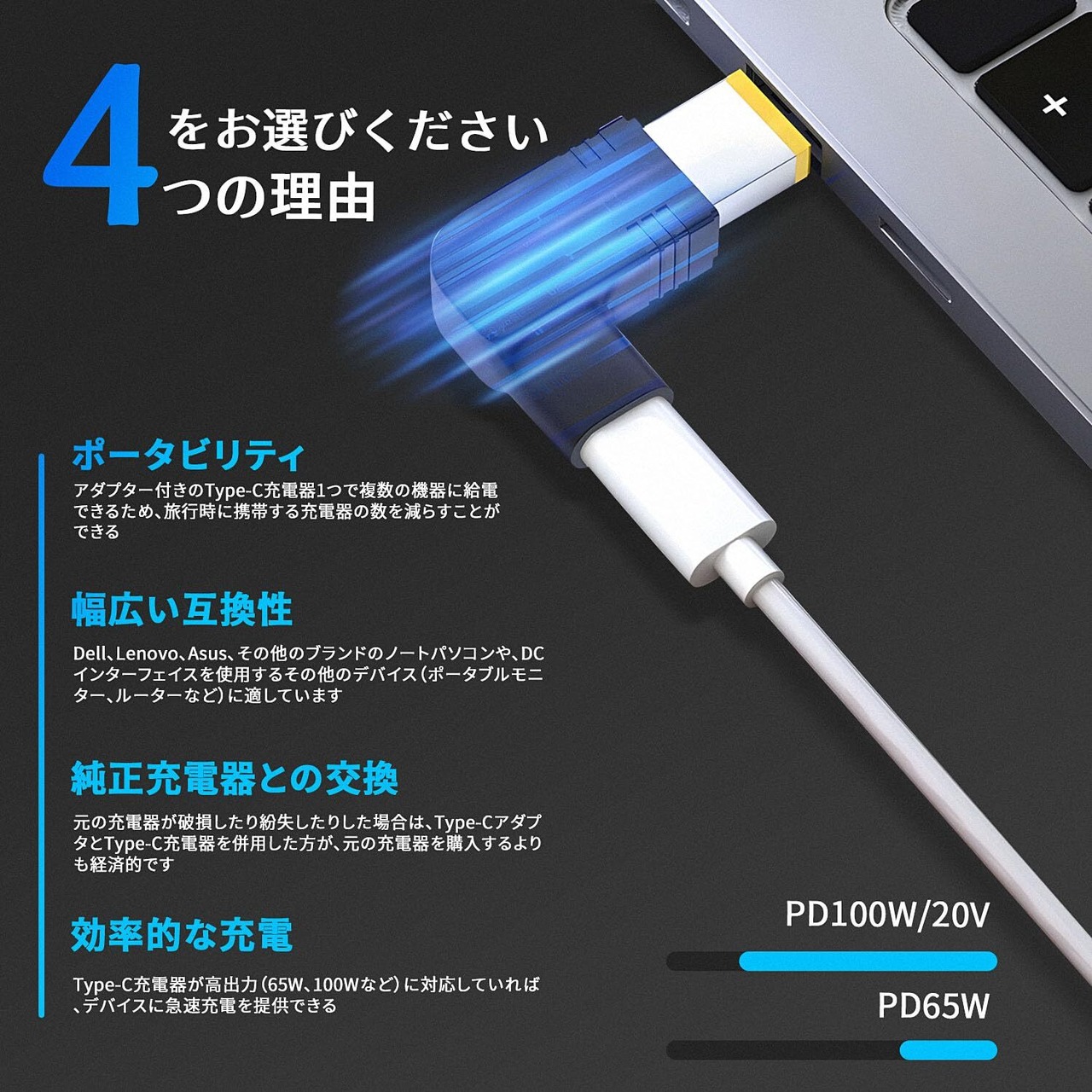 【広範な適用】使いやすい、広い応用範囲、Lenovo、DELLにも対応可能。様々なシーンの便利な充電を実現できる。