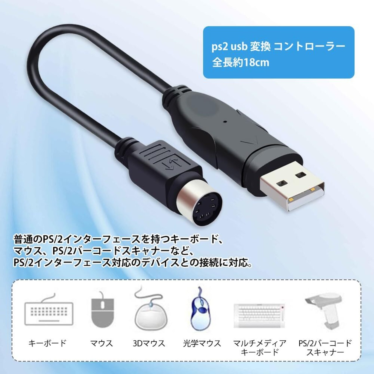 UrbanPulse ps2 usb 変換 コントローラー USB A (オス)-ミニDIN 6pin(メス)変換コネクタ PS/2 マウス・キーボード 用変換アダプタ USB2.0変換ケーブル 全長約18cm ブラック