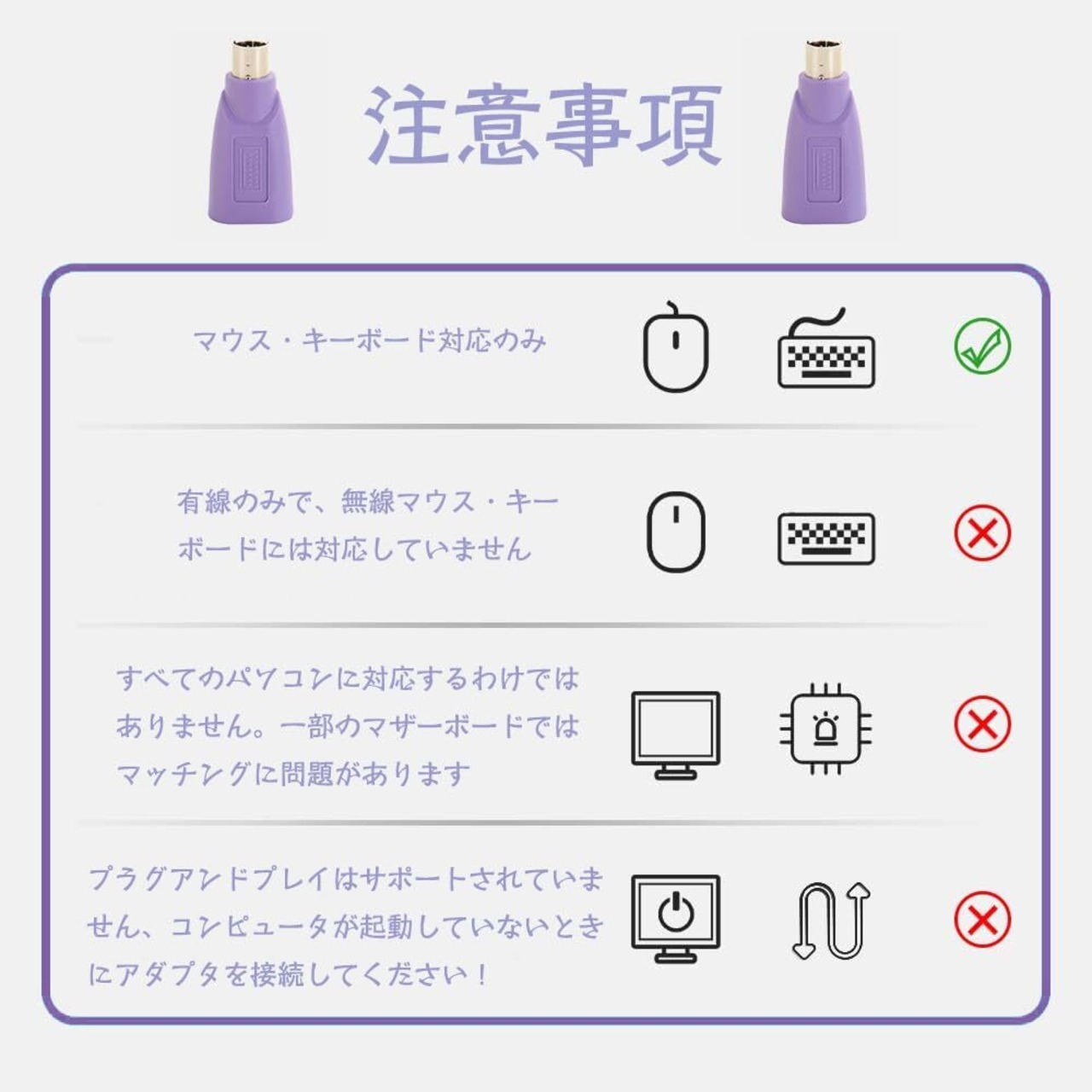 PS2-USBコネクタ パープル 2個入り マウスとキーボードのコンバーター PS/2キーボード対応PS/2(オス) - USB変換アダプタ(メス)