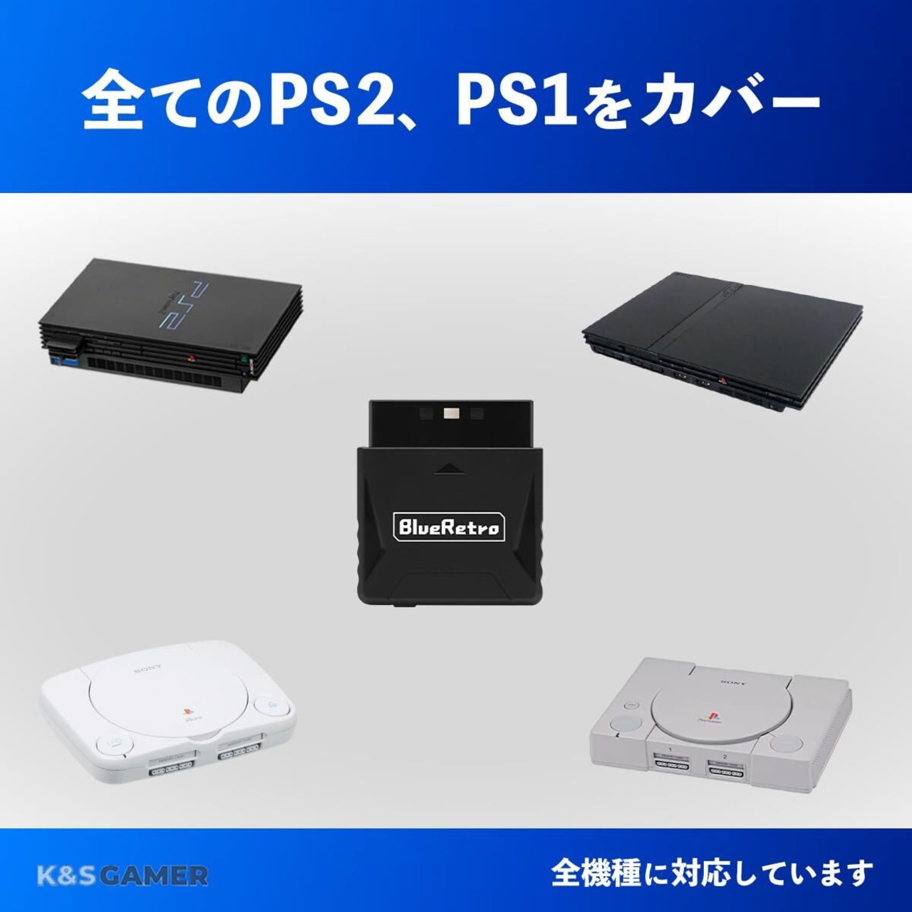 【K&SGAMER】 PS2/PS1 コンバーター 最新コントローラー対応(PS5、PS4、PS3、Switchプロコン、Xbox) (ブラック)