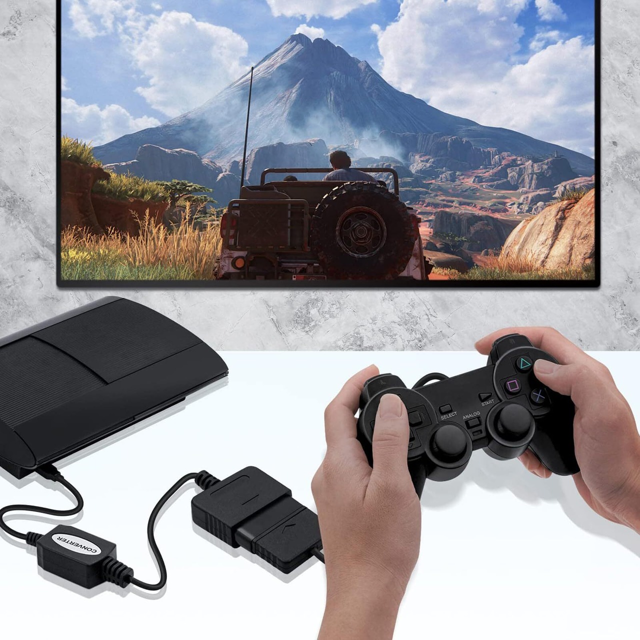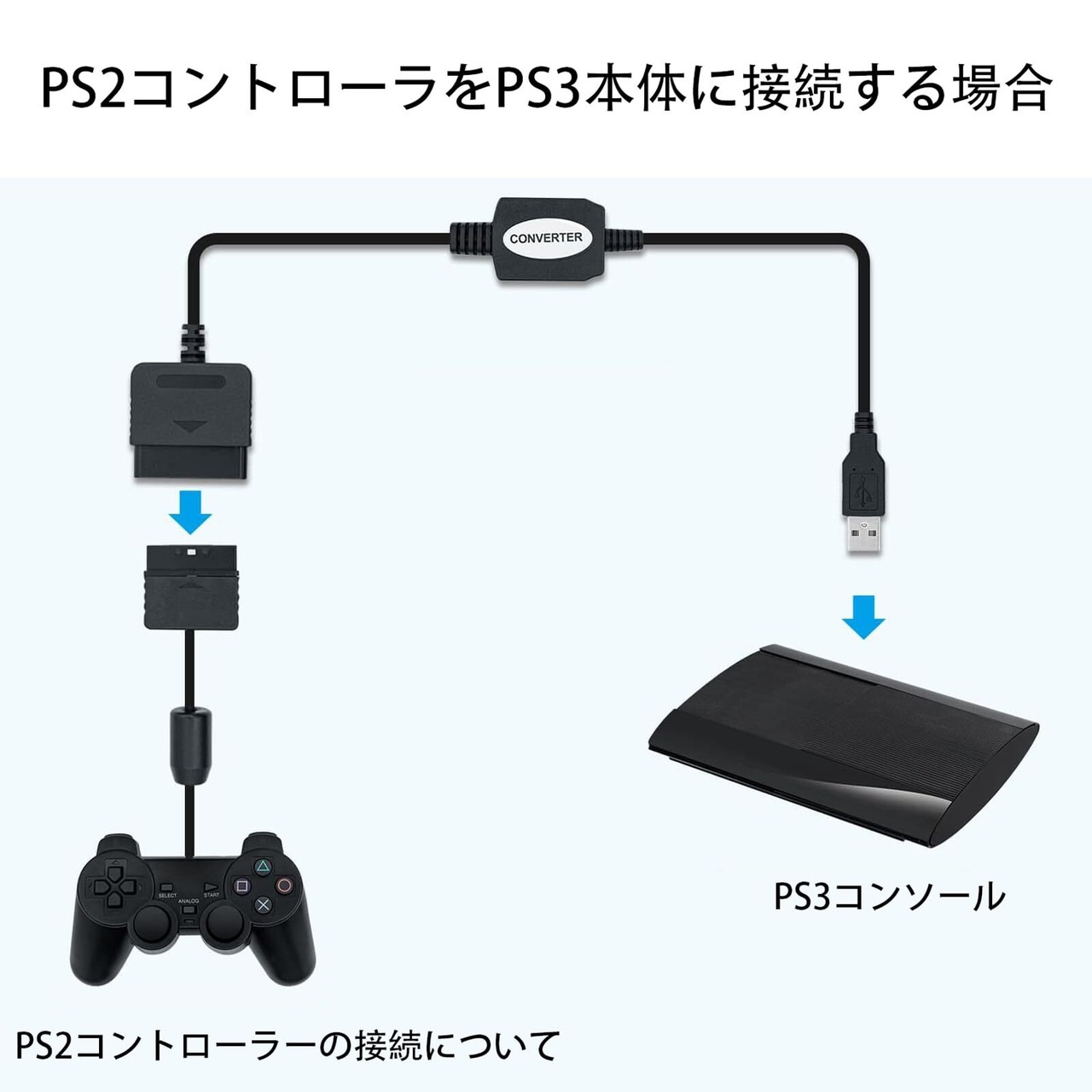 PS2コントローラをアダプターに接続し、アダプターの反対側をPS3のUSBポートに接続するだけです。