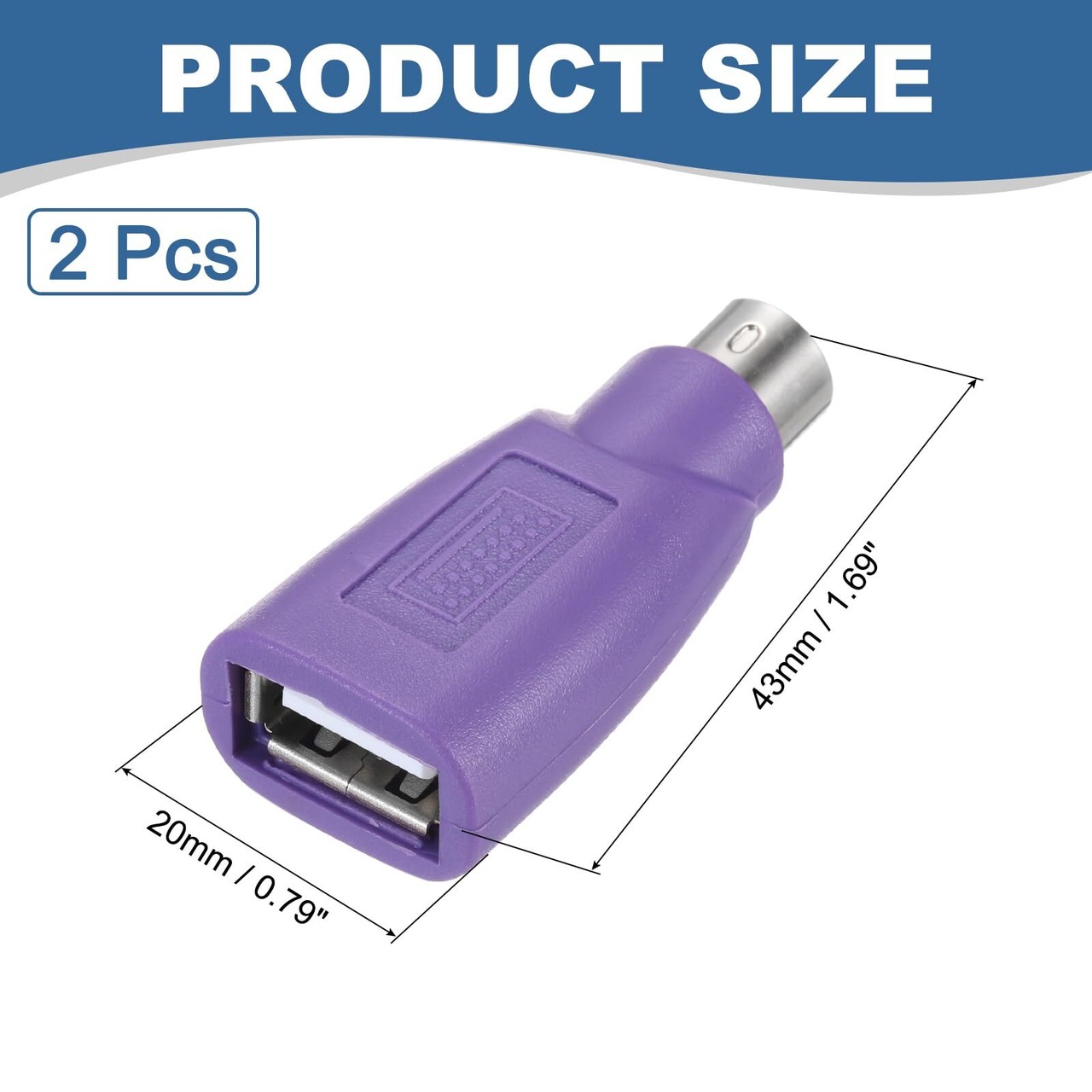 uxcell 2個 PS/2からUS Bポート PS/2メスからUS Bオスアダプター 有線マウスキーボードデスクトップPCノートブック用 パープル