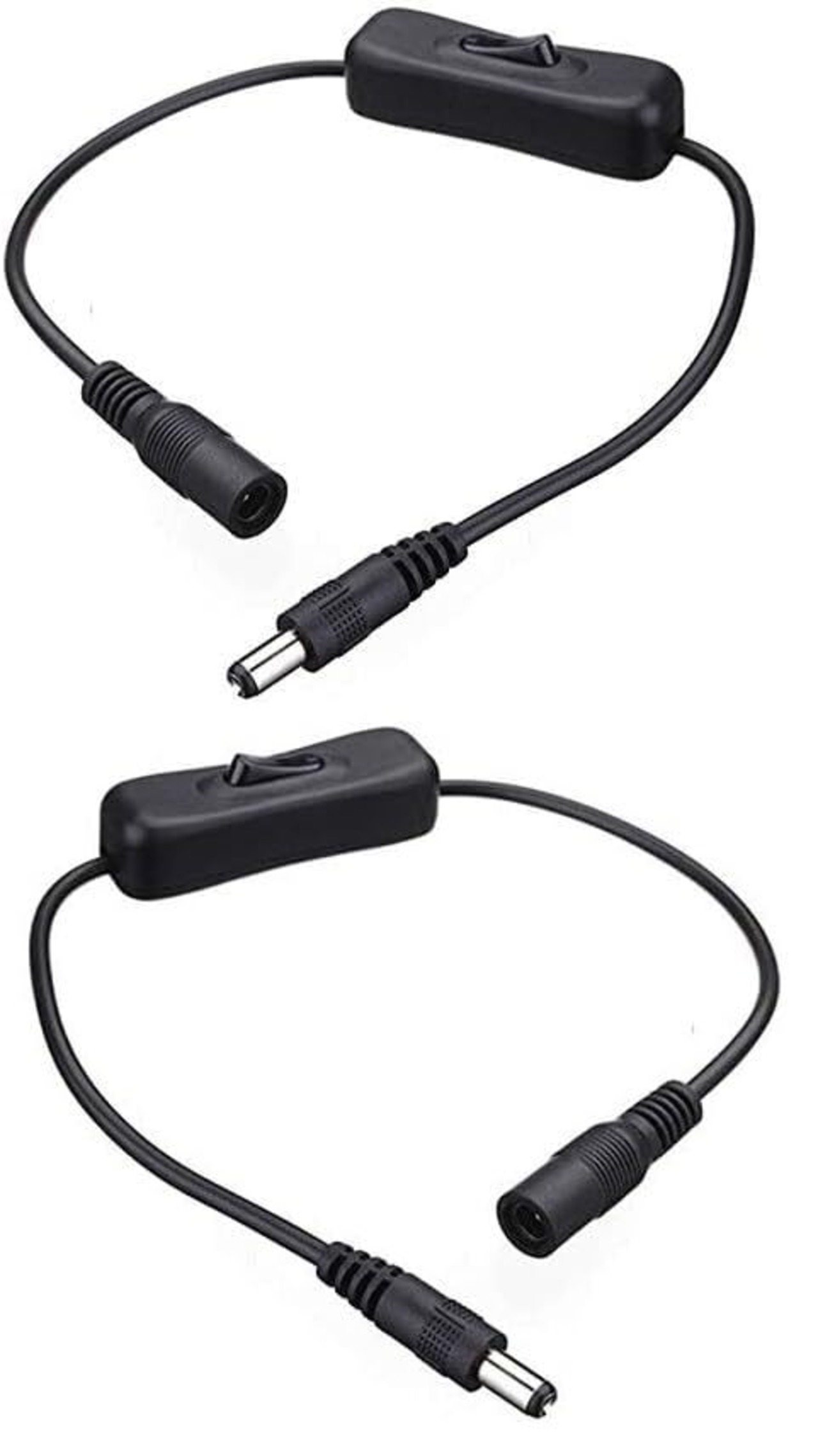 5.5 mm x 2.1 mmのメスとオスのDCジャックプラグによる簡単な取り付け ON / OFF機能付の延長ケーブルです。