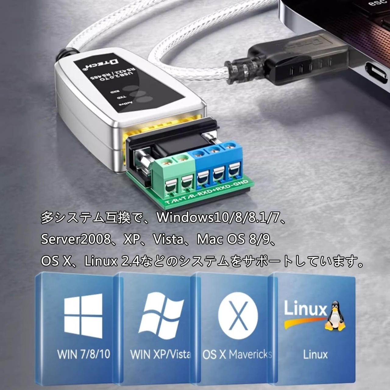 【プロフェッショナルUSB2.0 to RS485 RS422 converter】USBからRS485 / RS422へのコンバーターがあれば、RS485、RS422機器ならなんでも直接お手持ちのパソコンのUSBポートに接続することができます。ゼロ遅延の自動送受信および変換機能がコンバーターに内蔵されているため、無遅延、高速データ伝送を確保し、通信に信頼できる接続を提供します。
