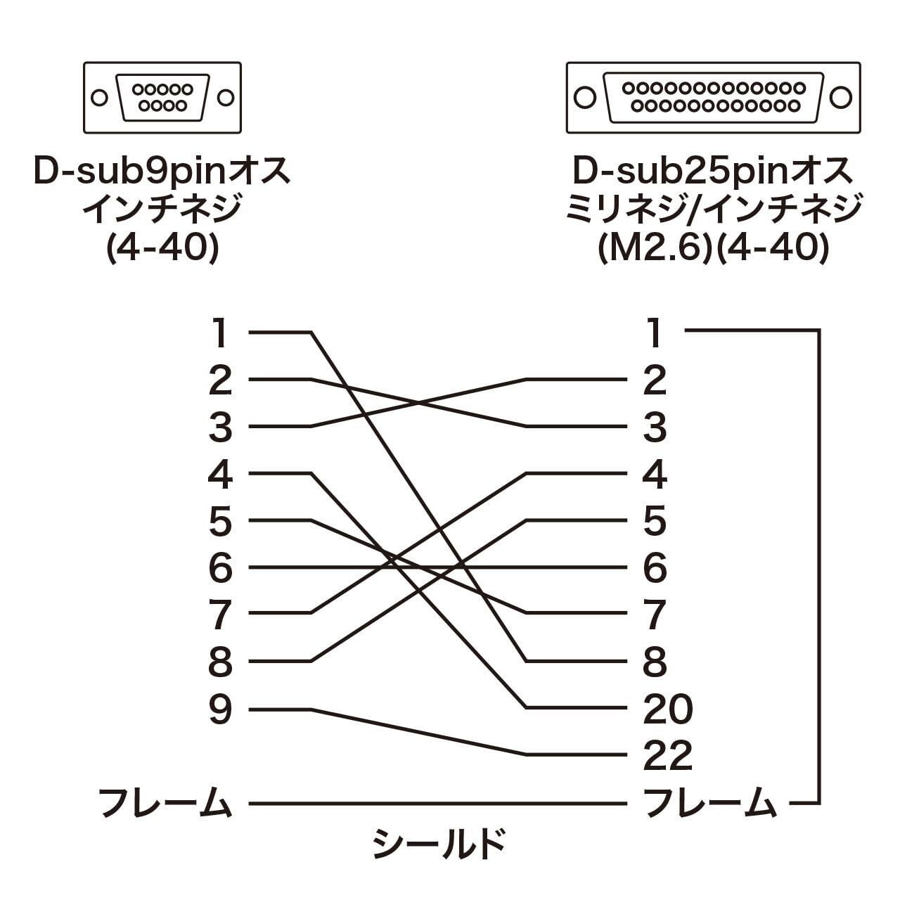 【コネクタ】:D-sub9pinオス インチネジ(4-40)-D-sub25pinオス ミリネジ(M2.6)/インチネジ(4-40)