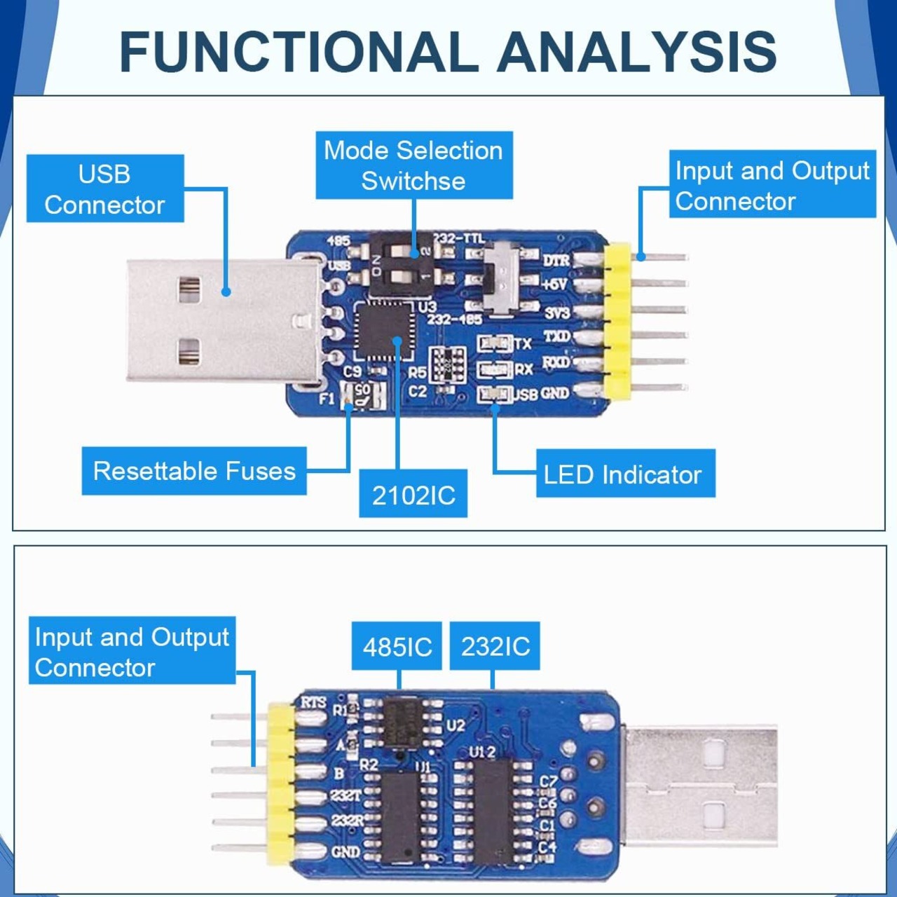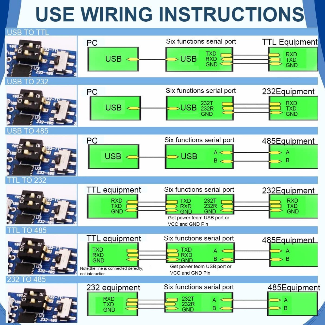 DAOKAI CP2102 USB-UARTコンバータ6 in 1 USB to TTLシリアルアダプタモジュール多機能(USB to TTL 485 232, TTL to 232 485, RS232 to 4850) 2Mbps for Windows 7/8/10、Linux、Arduino用