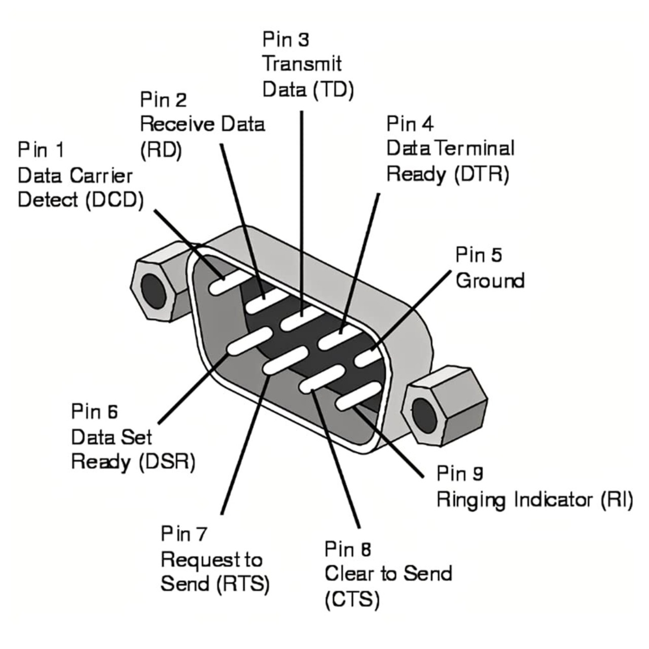 RS232 DB 9ピンオス、ネジナット付き。