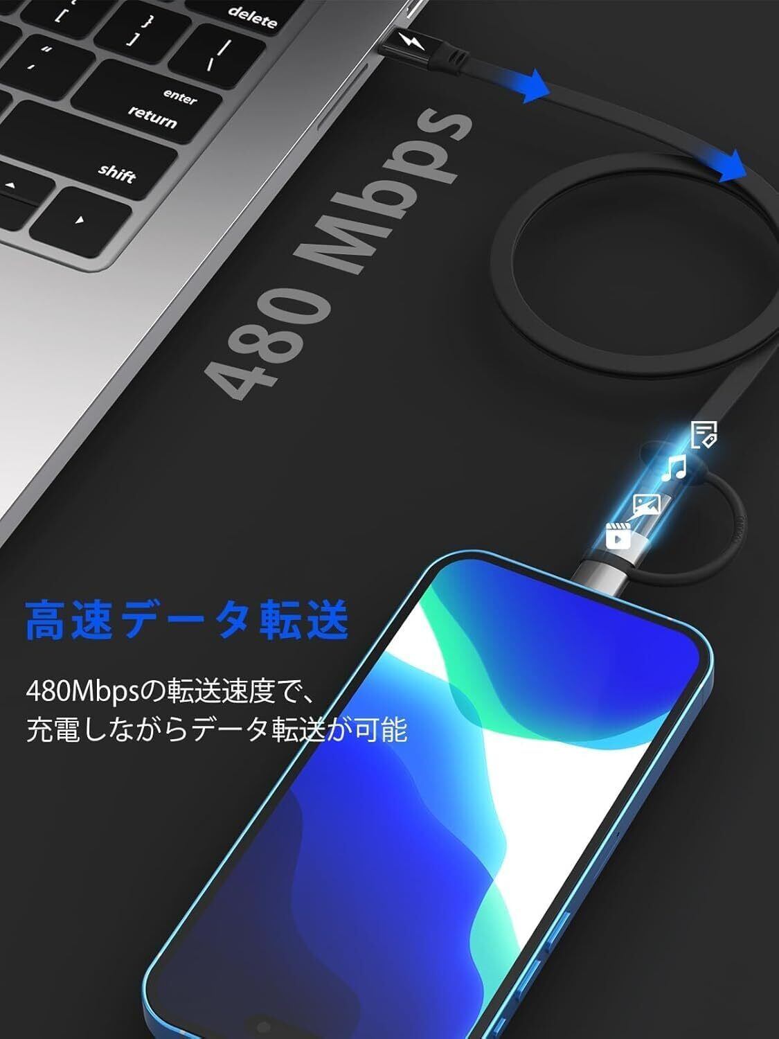 【高速データ転送対応】:このライトニング タイプC 変換アダプタは最大480Mbpsのデータ転送速度を実現し、iPhoneやiPadからPCへのデータ転送を高速化します。ただし、OTG機能とイヤホンには対応していません。