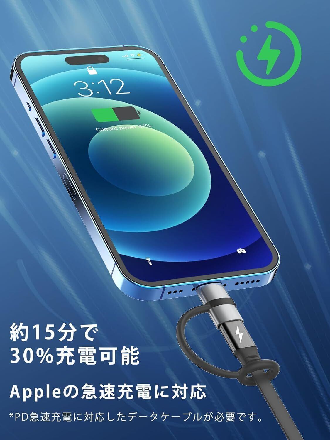 【36W PD対応急速充電】:こちらのusbc ライトニングケーブル 変換アダプタはPD規格に準拠し、最大36Wの出力で急速充電を提供します。iPhoneは約15分で30%充電可能です。