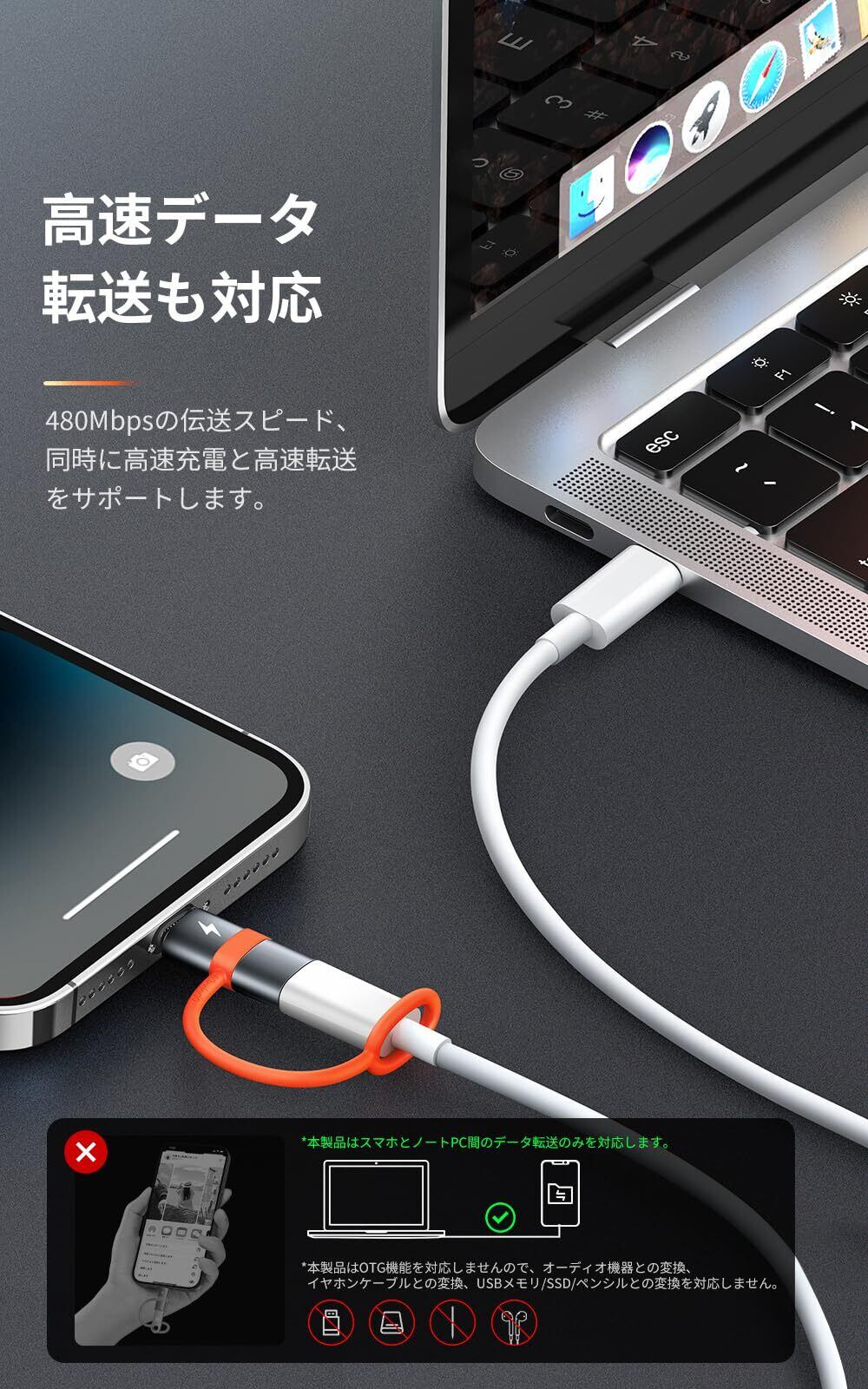 【スマートデュアルチップ搭載】:PDチップを内蔵し、電流電圧を自動的に調節でき、安定した高速充電を対応できます。E-markerチップを内蔵されたType-C to Type-Cケーブルも対応します。【高速データ転送も対応】:480Mbpsの伝送スピード、同時に高速充電と高速転送をサポートします。(※本製品はデータ転送をサポートしていますが、OTG機能を対応しませんので、 ライトニングインターフェース対応のiPhoneまたはiPadからパソコンへの転送のみを対応します。※本製品はOTG機能を対応しませんので、 USBメモリ・イヤホン・マウスとの変換を対応できません)。