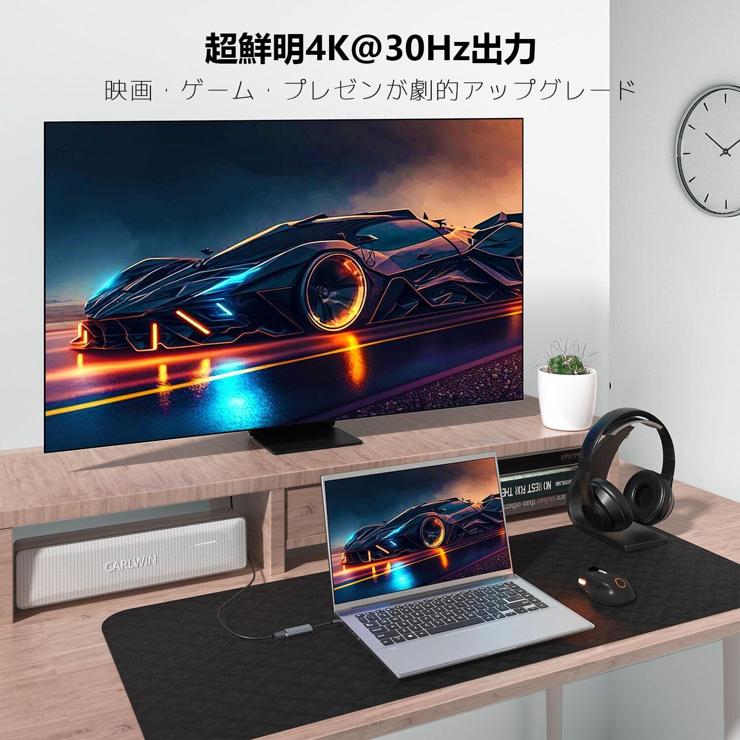 USB C HDMI 変換アダプター 4K@30Hz 映像出力 Thunderbolt3/4対応 設定不要/在宅勤務 HDMI Type C 変換ケーブル MacBook Air/Pro、iPad Pro/Air M1 M2、iPhone 15/16、Surface Book、Galaxy S22/S22+などAndroid対応