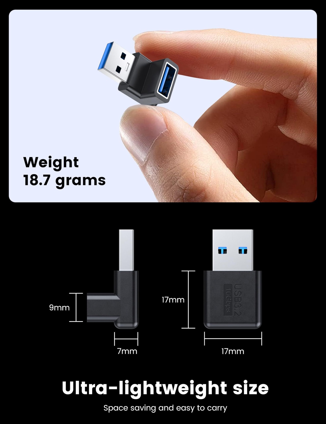 MOGOOD USB 3.2 アダプタ 2個入り 90度 USB 直角変換 10Gbps Type A 変換アダプタ タイプA オス メス 2つの方向は広く応用されている PC、ラップトップ、ハードドライブ、キーボードと互換性のある 10Gbps のデータ転送および充電をサポートします