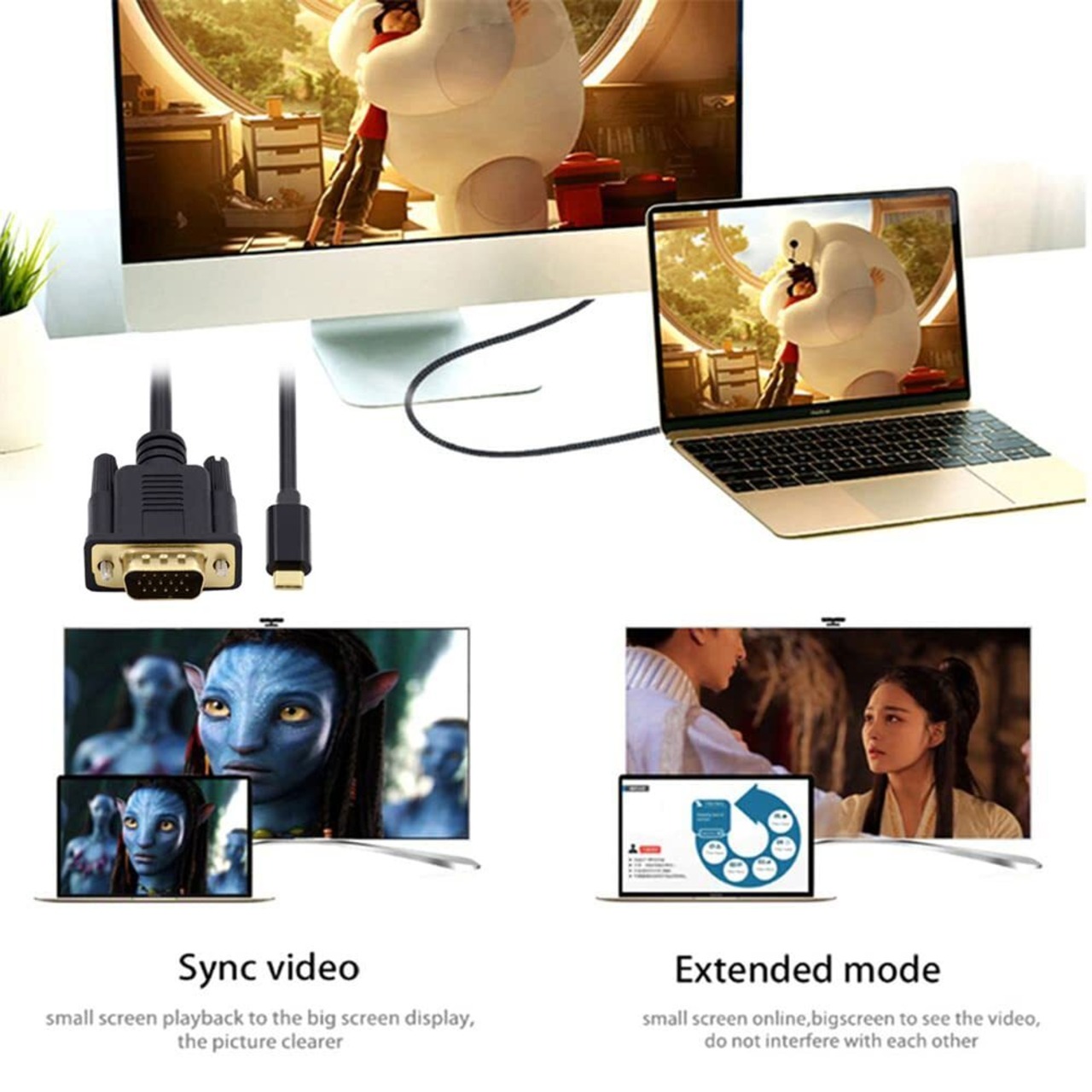 USB 3.1 Type C USB-CソースからVGA RGB 1080Pディスプレイオスモニターケーブル ノートパソコン用 1.8m