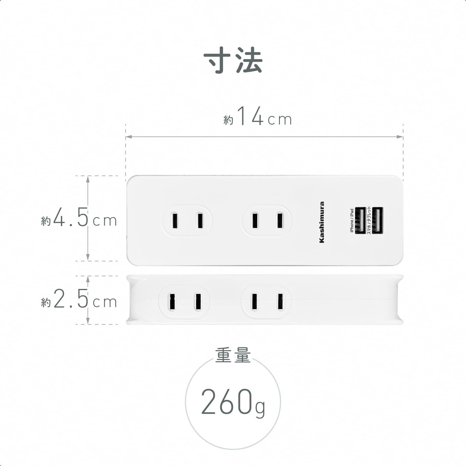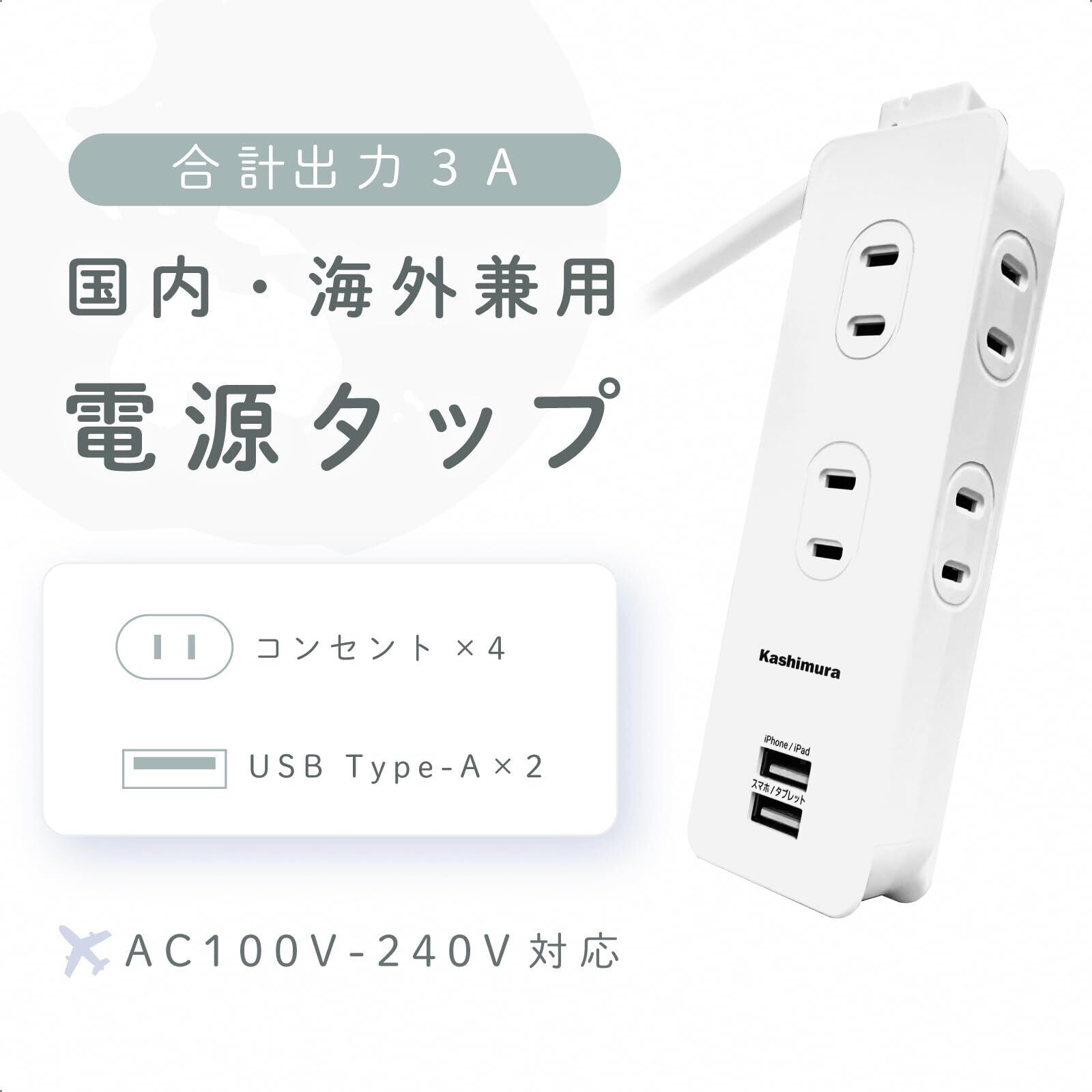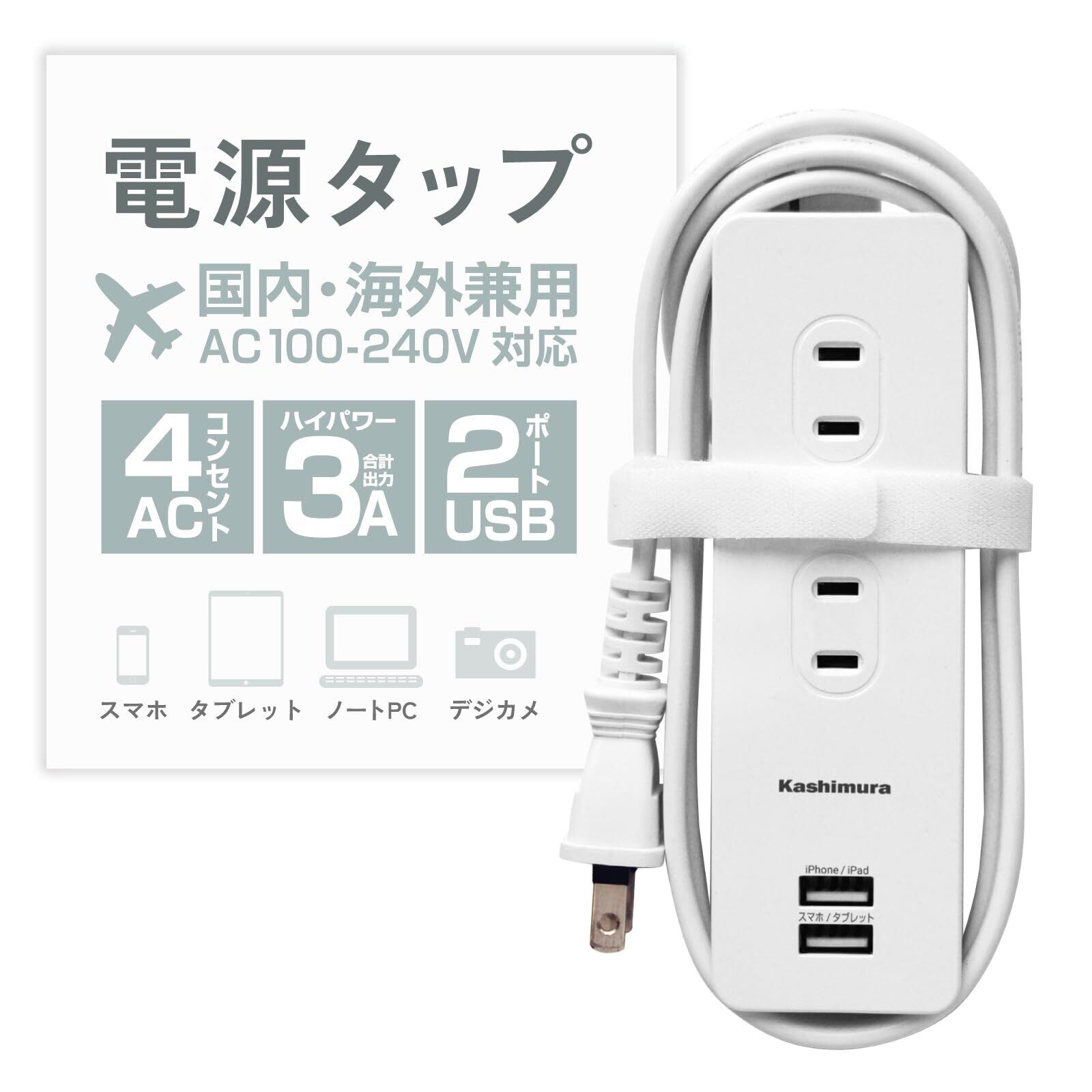 カシムラ 国内・海外両用電源タップ AC4P USB2P 3A WH 1.2m NWM-6 ホワイト