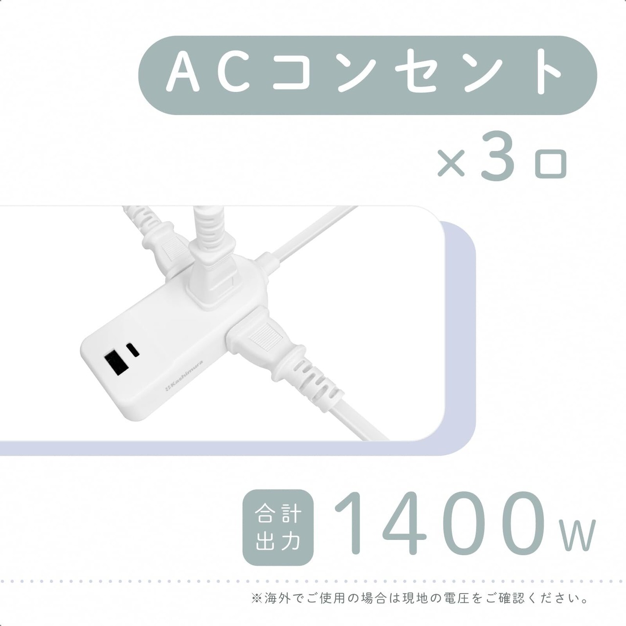 ACコンセントは3口合計1400WまでACプラグはトラッキングに強い樹脂保護付き。