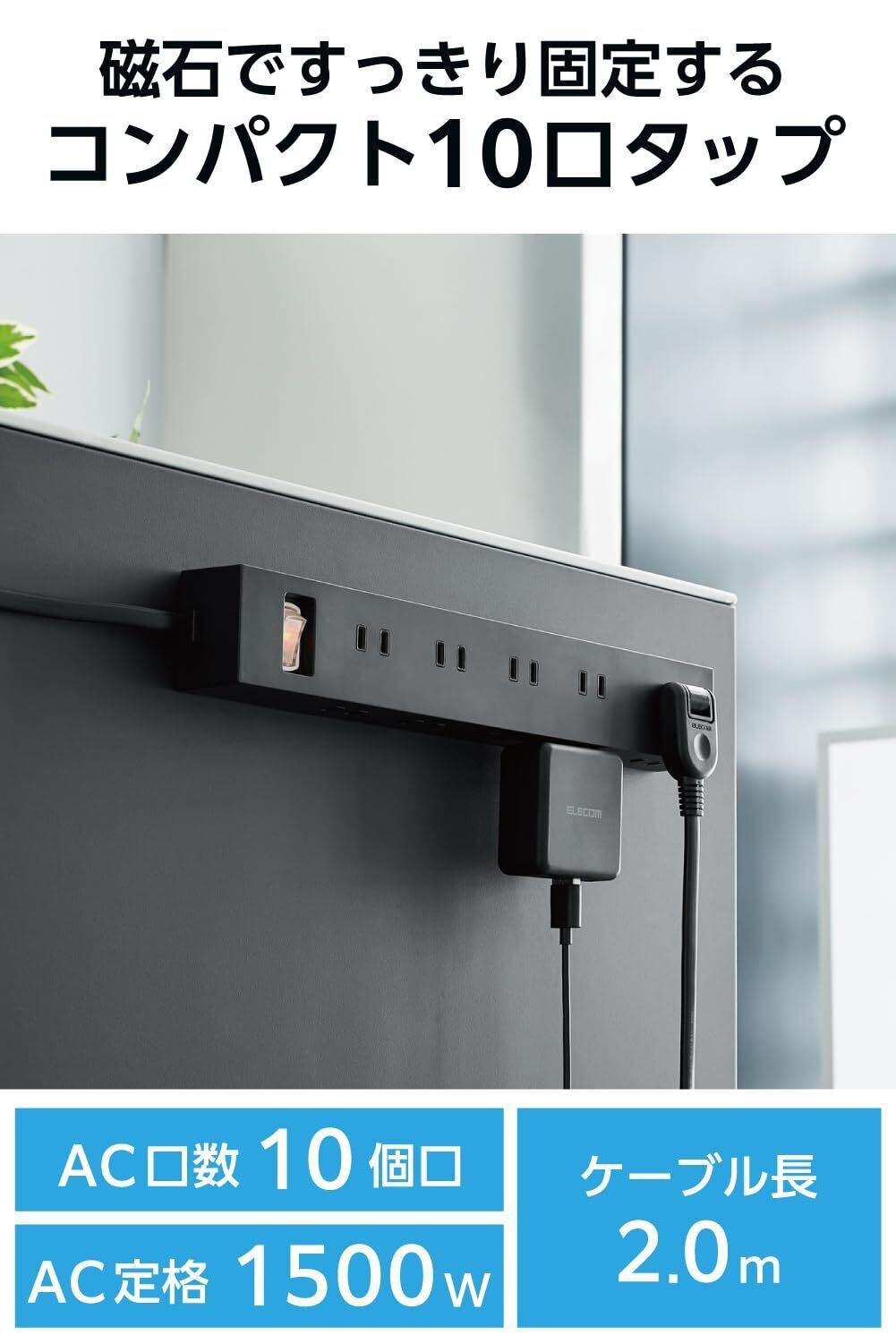 差込口を2面に分けて配置することで、10個口でありながらコンパクトになっています。