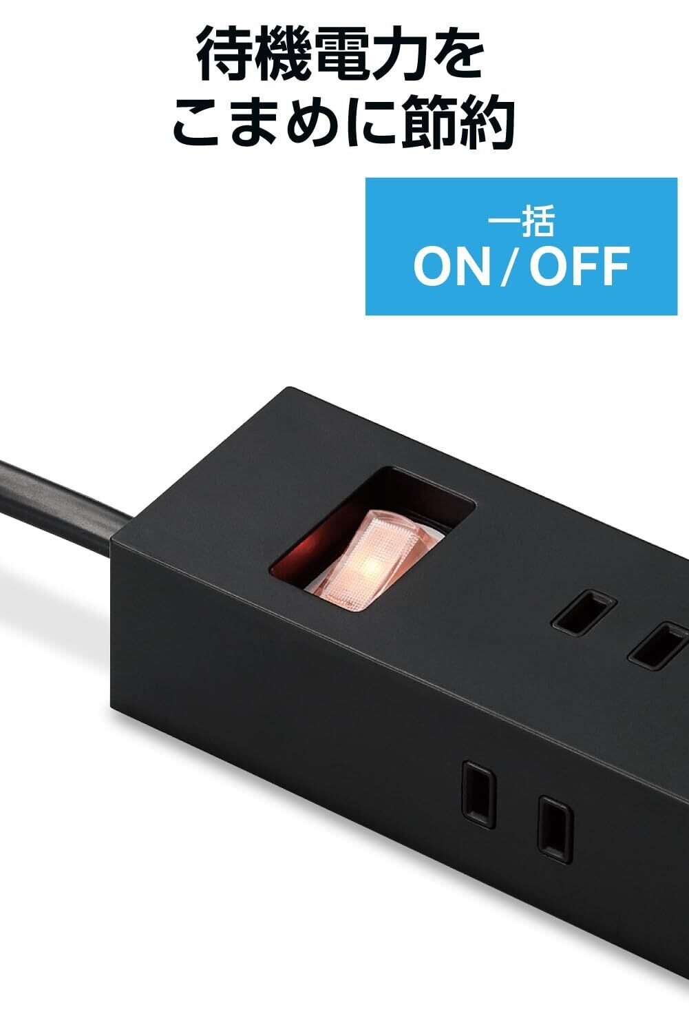 接続機器をまとめてON/OFFし、待機電力を節約できる一括スイッチが付いています。スイッチはON時、オレンジ色に発光し、ひと目でON/OFFの状態が確認できます。