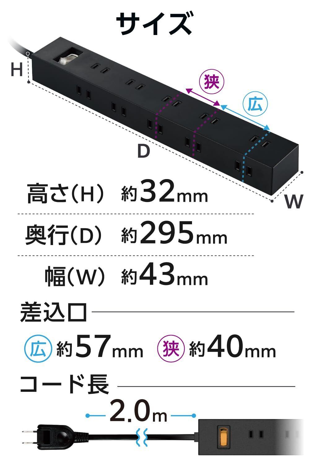 ■外形寸法:幅295mm×奥行43mm×高さ32mm ※コード部分及びプラグ部分を除く