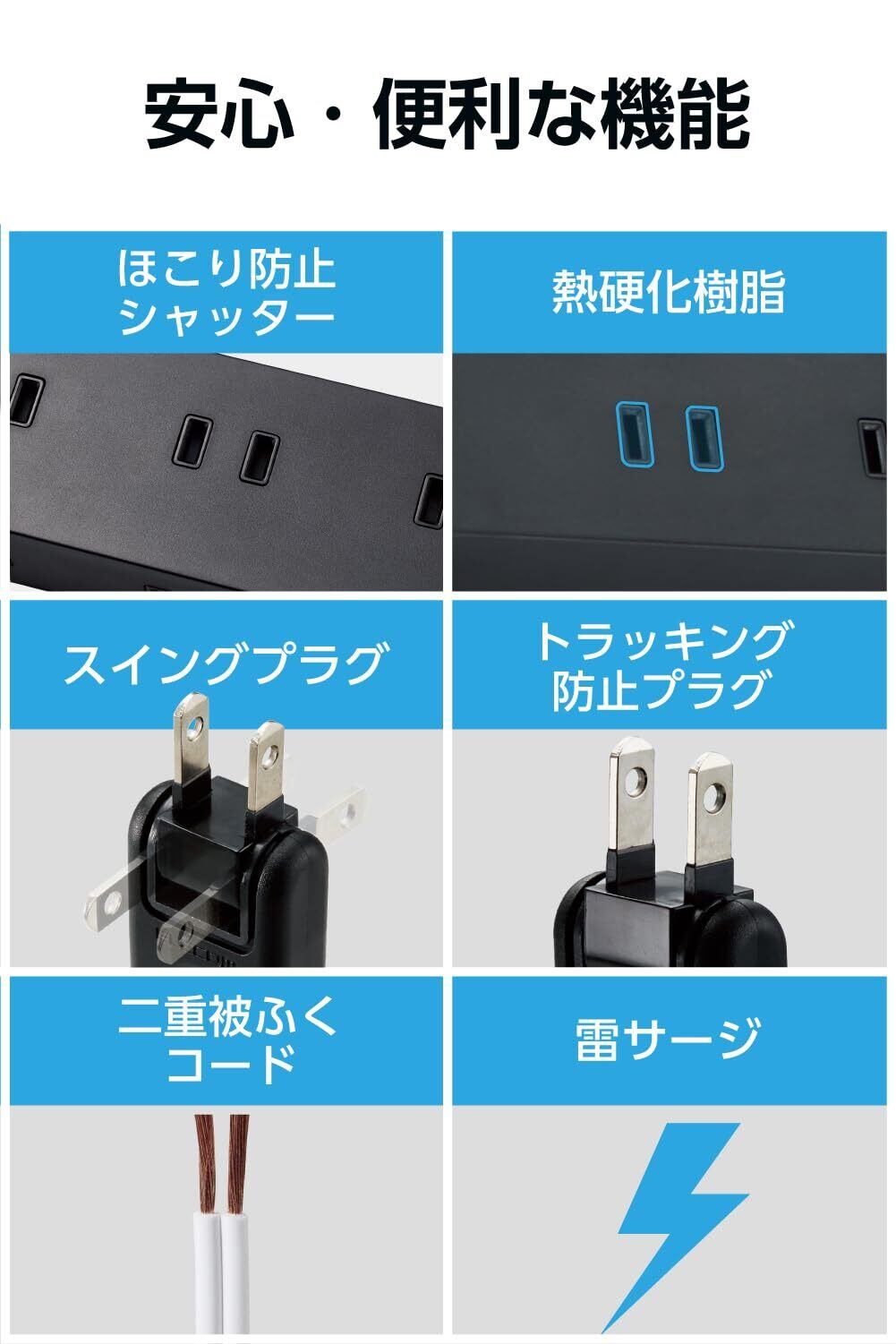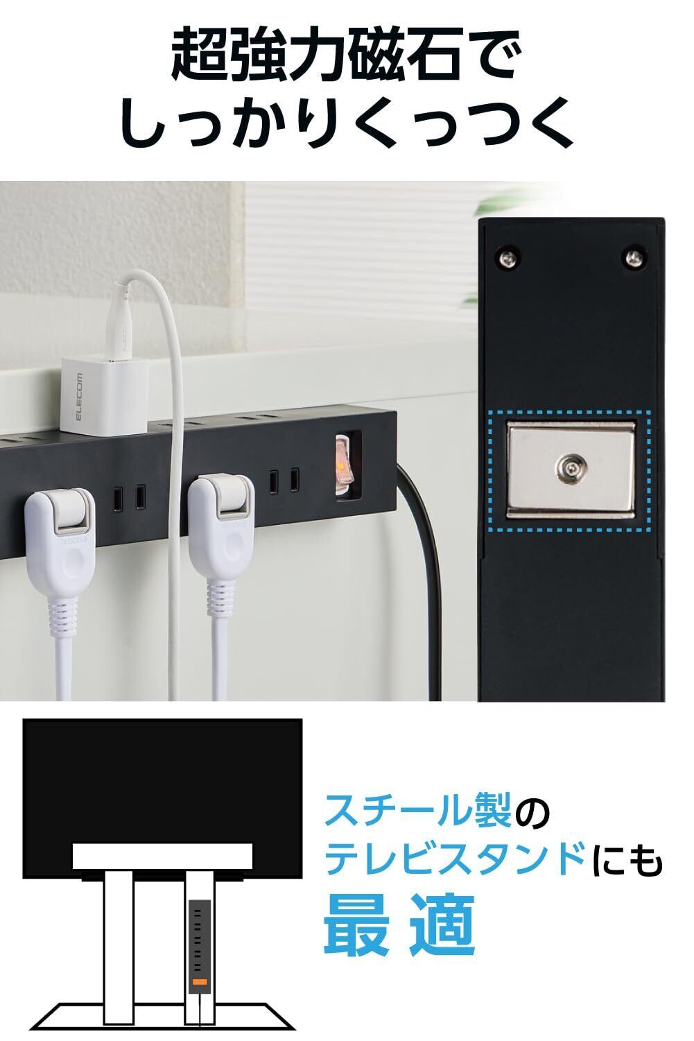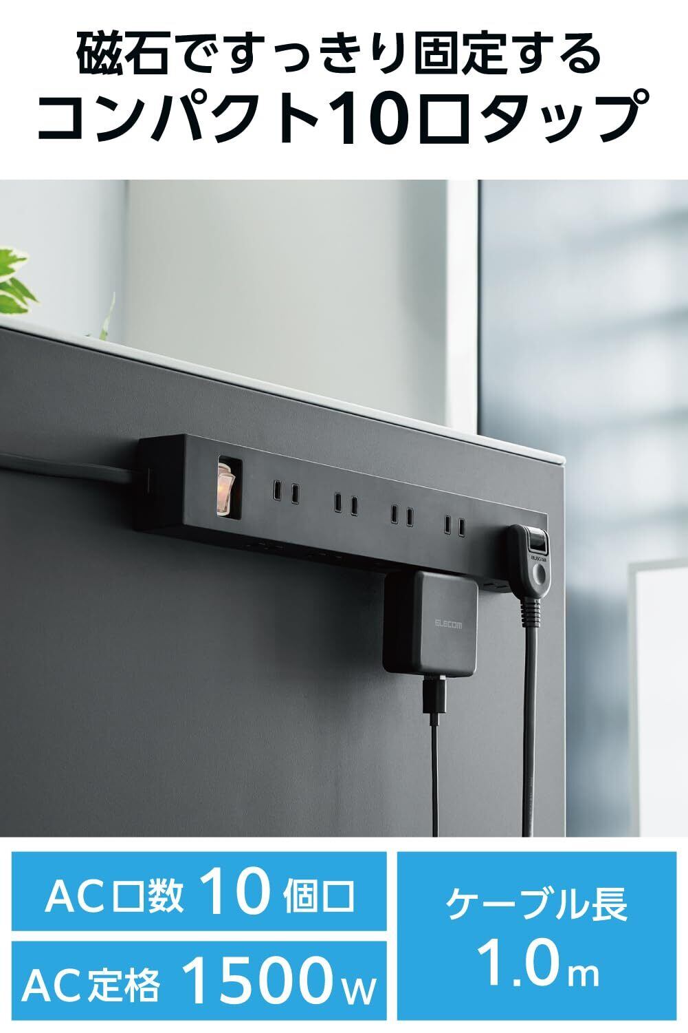 エレコム 電源タップ 雷ガード 10個口 差し込み口2面 1m マグネット ほこりシャッター付 スイングプラグ 一括スイッチ コンパクト ブラック ECT-1510BK