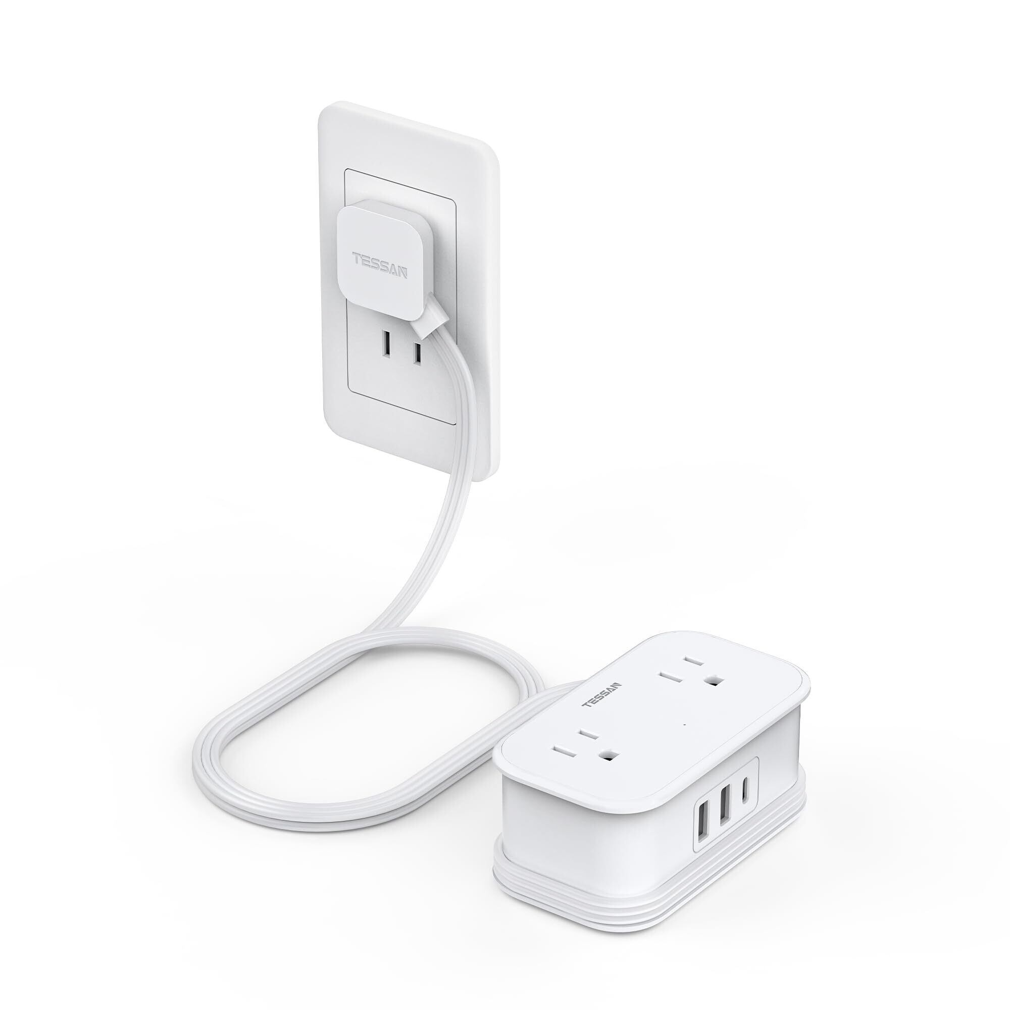 1台7役USB-C付き電源タップ:4個AC差込口、1つType-Cポートと2つUSB-A 1ポートを搭載し、最大7台デバイス同時に充電可能です。また、ACコンセントが前後に分散しているため、使用時に干渉を防ぎながら接続可能です。