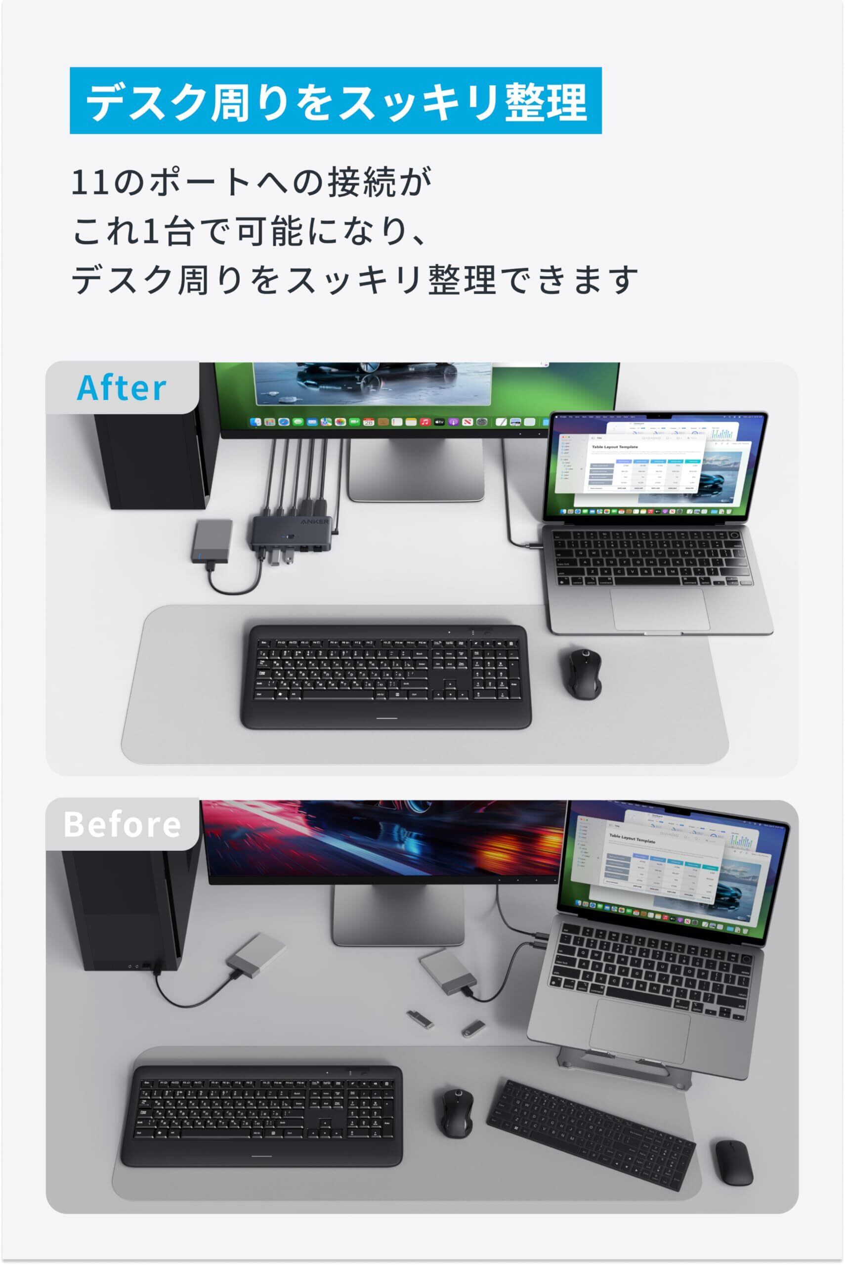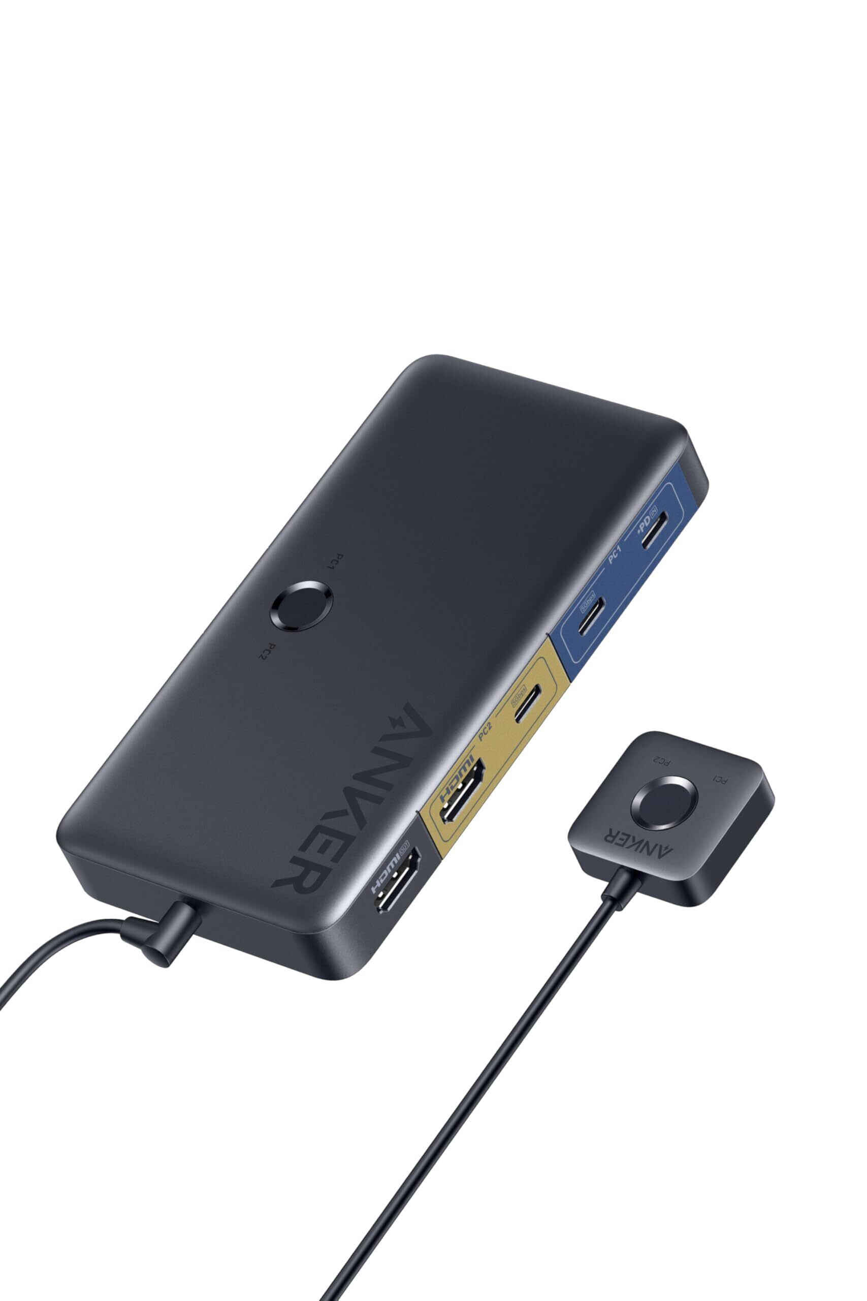 Anker KVM Switch (4K, For デスクトップPC & ノートPC) 11-in-1 切替器100W USB PD対応 4K 60Hz HDMIポート 5Gbps高速データ転送 USB-Cポート USB-Aポート搭載 ワンクリックで2台のPCを簡単切替 ノートPC デスクトップPC MacBook/iPad/Dell/Steam Deck 他対応