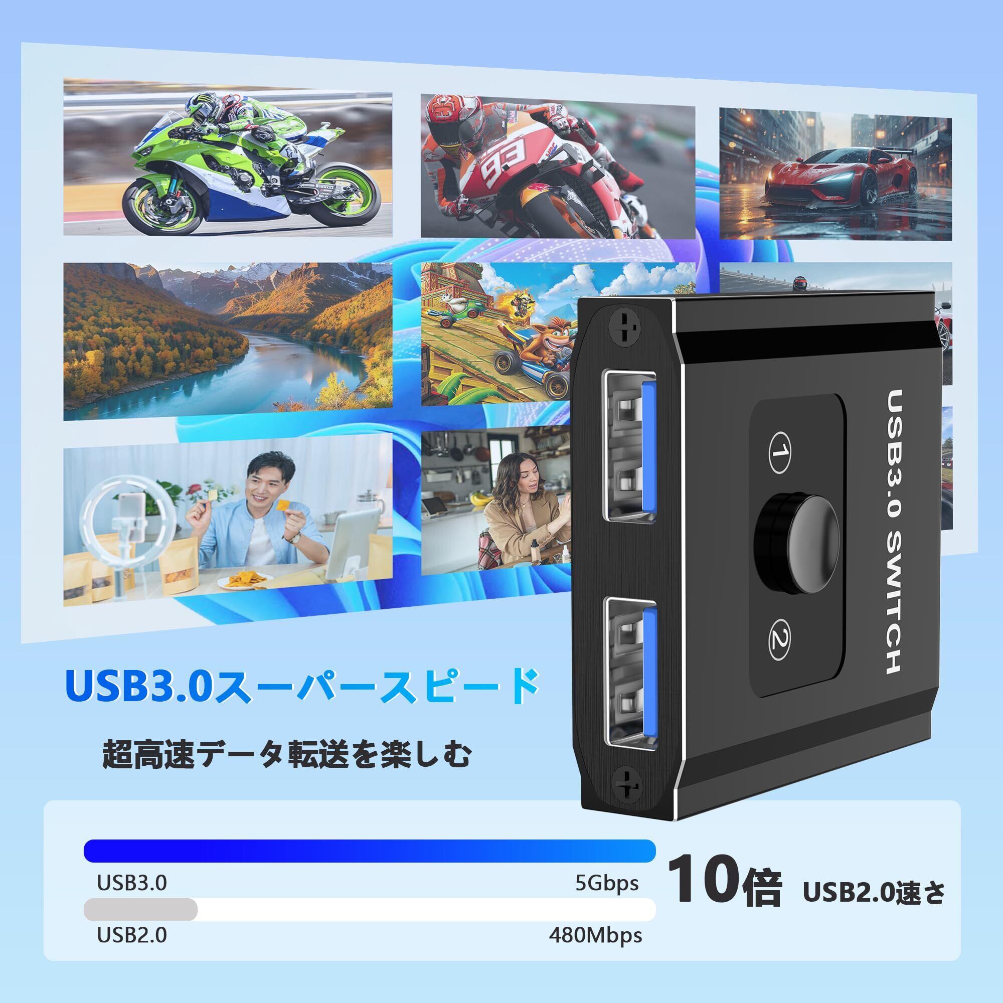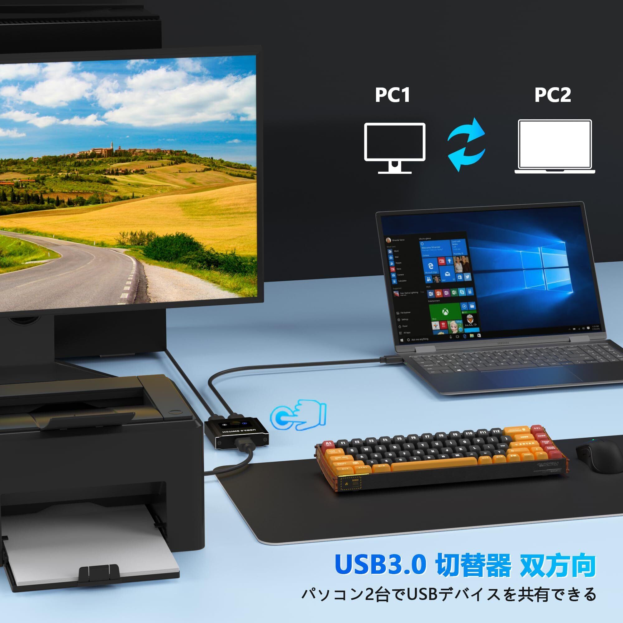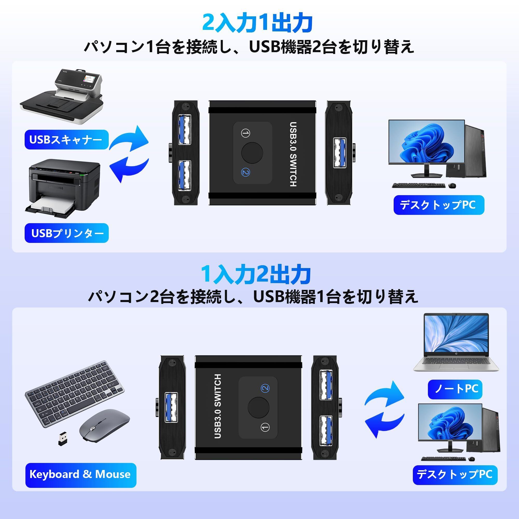 USB3.0 切替器 PC 2台用 双方向 2入力1出力/1入力2出力 5Gbps高速転送 USB 切り替え機 1台のプリンターを2台のパソコンで使用 マウス キーボード 切り替え器 USB セレクター パソコン 2台 キーボード 1台 Type-Aスイッチャー スイッチ 2本のUSB3.0ケーブル付き ポータブル 耐久性