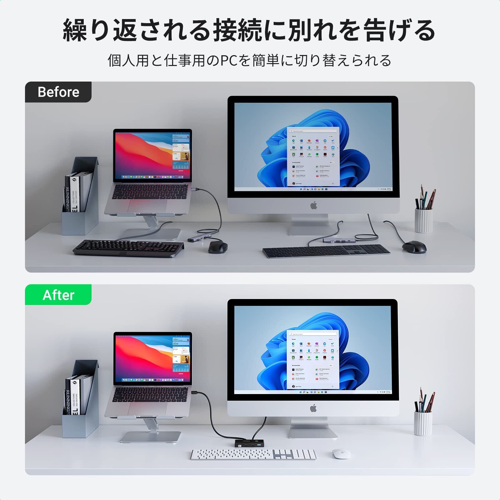 対応OS:Windows 10/8/7/XP/Vista 32/ 64-bit Mac X Linux。活線挿抜(ホットスワップ/Hot swap)機能搭載、ドライバー不要で使用機器を接続すると、即座に認識し使用可能です。ボタン一つで簡単に切り替えることができます。