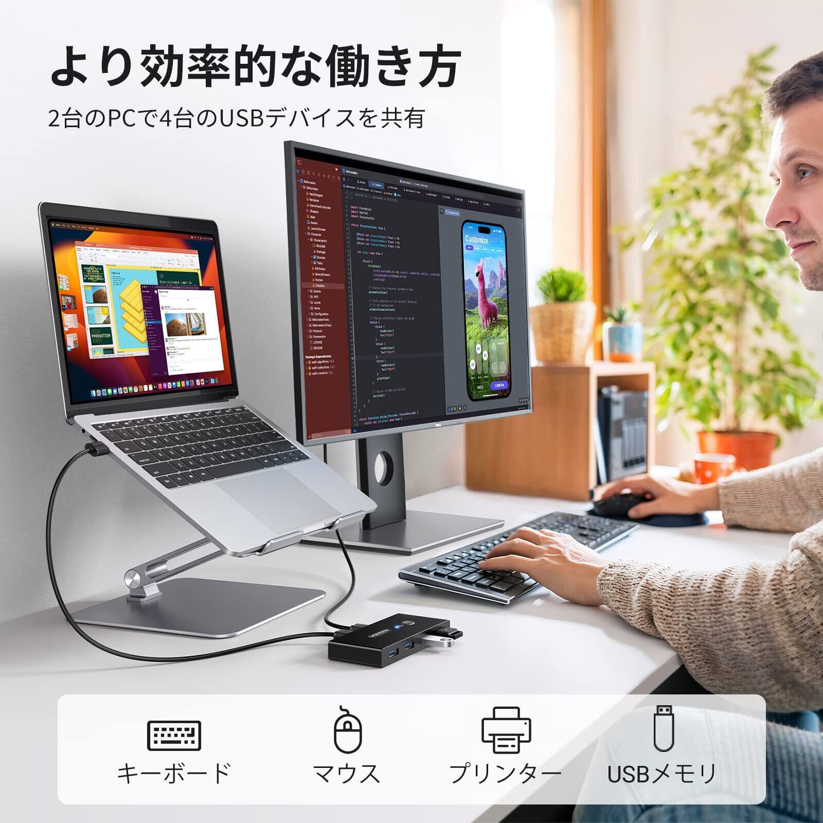 UGREEN 切替器 3.0 高速転送 USB 切り替え PC2台用 プリンタ マウス キーボード ハブなどを切替 手動切替器 プリンタ 切り替え機 USBケーブル×2 1.5m (附属品) (パソコン2:USB機器4)