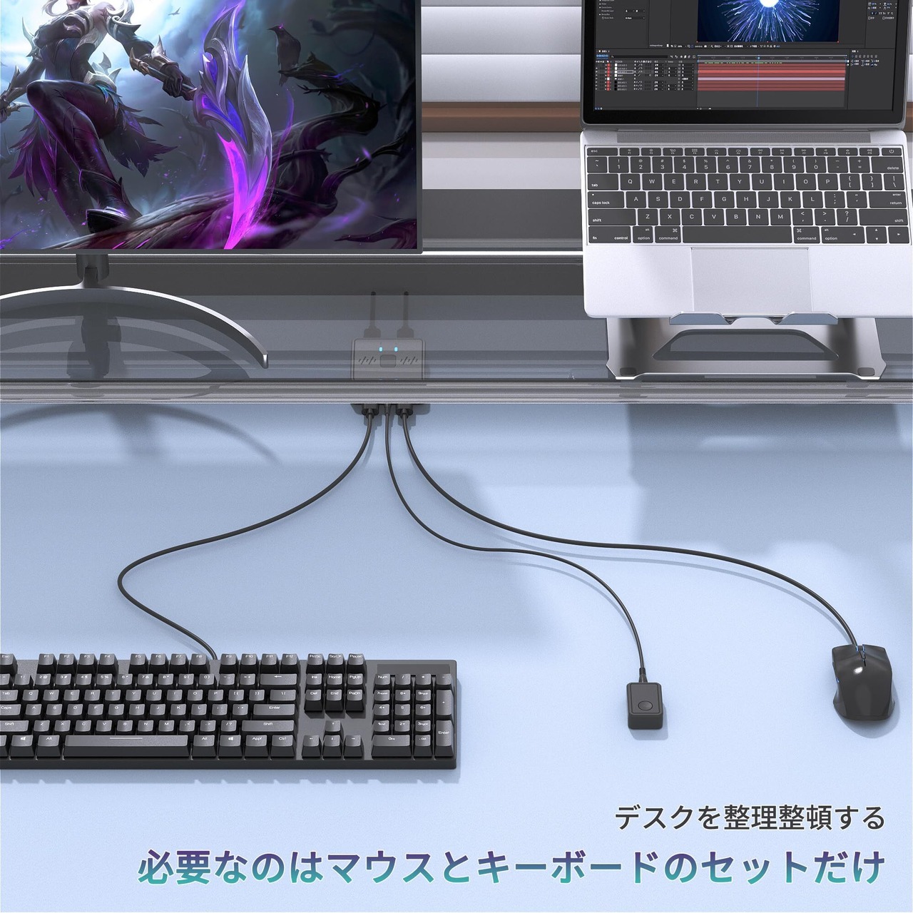 マウスとキーボードの共有 : 2台のコンピュータ間でマウスとキーボードを簡単に切り替えて、デスクトップのスペースを節約できます。マウスとキーボードを2セット用意する必要がありません。