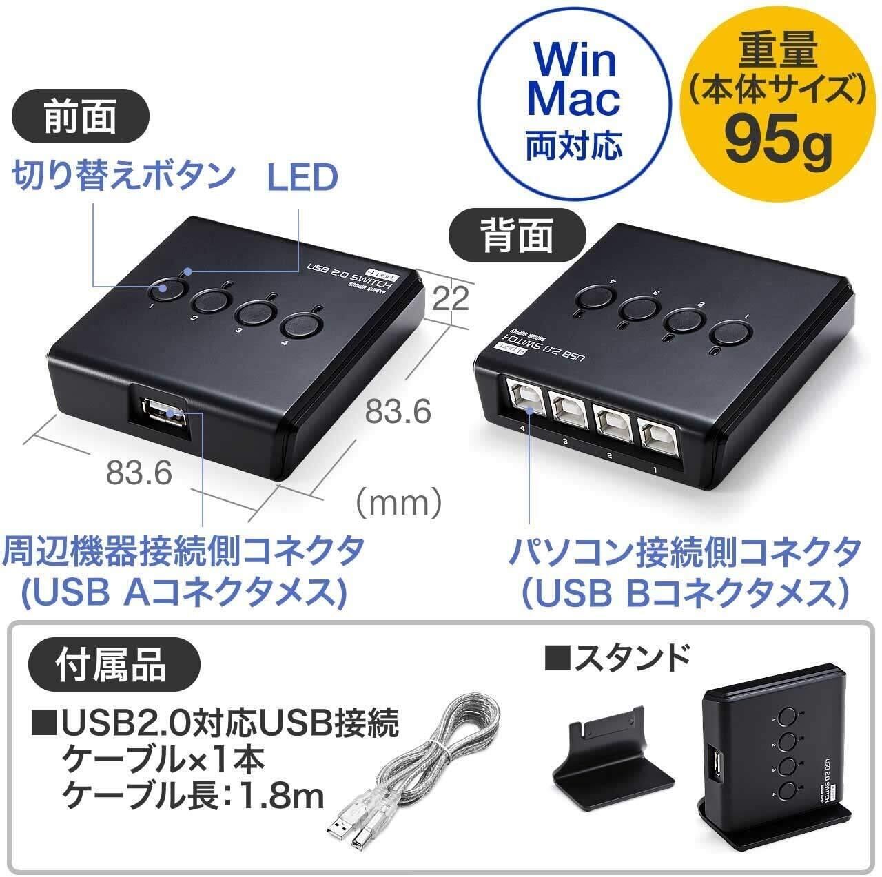 現在接続されているパソコンがわかるLEDランプ付きで、接続状況がひと目でわかります。