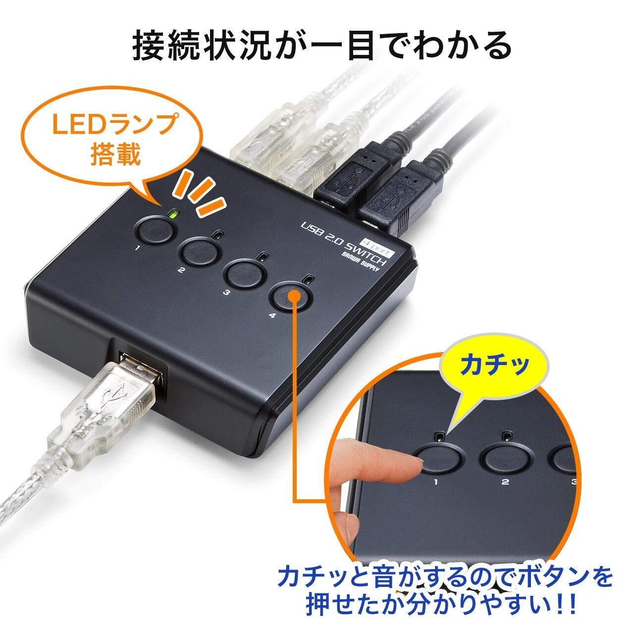 サンワダイレクト USB切替器 手動 【PC4:USB1】USBハブ機能付 プリンタ 外付けHDD キーボード マウス 対応 400-SW021