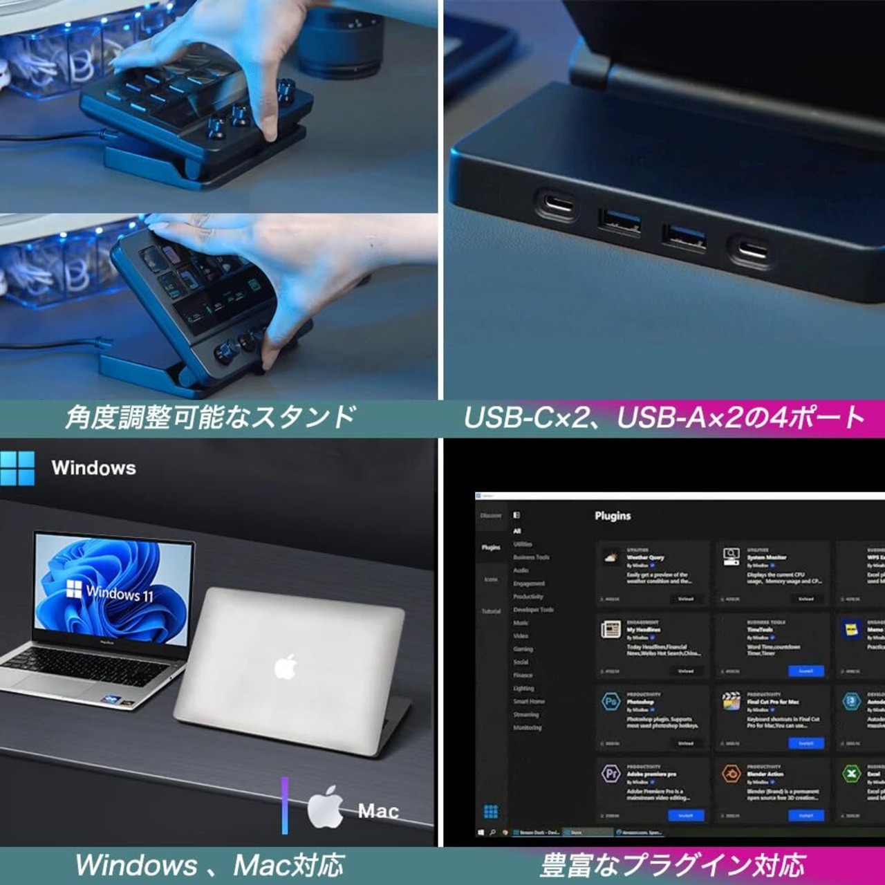【タップするだけ!ワンタッチ操作で簡単に使える】 どんな操作もタップするだけで操作が完了。カメラの切り替え、マイクのミュート、アプリの起動、サウンドエフェクトの使用、照明のオン、シーンの変更などを素早く設定可能。さらに、複数の操作を組み合わせたマルチアクションも設定でき、効率的に管理できます。