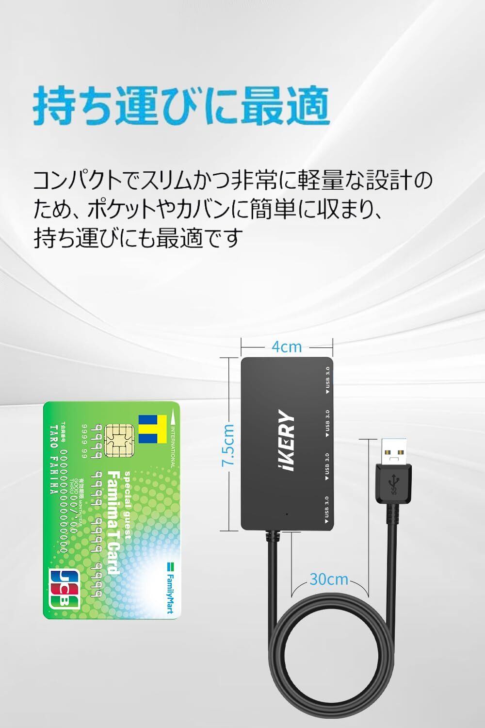 IKERY USBハブ 4 Type‐Aポート 4in1 USB3.0 HUB 5Gbps高速データ転送 軽量 コンパクト超小型 タイプA usb拡張 増設 Windows/Mac/ChromeBook等ノートPC PS4/ PS5 対応 在宅勤務 出張外出 30cm ケーブル