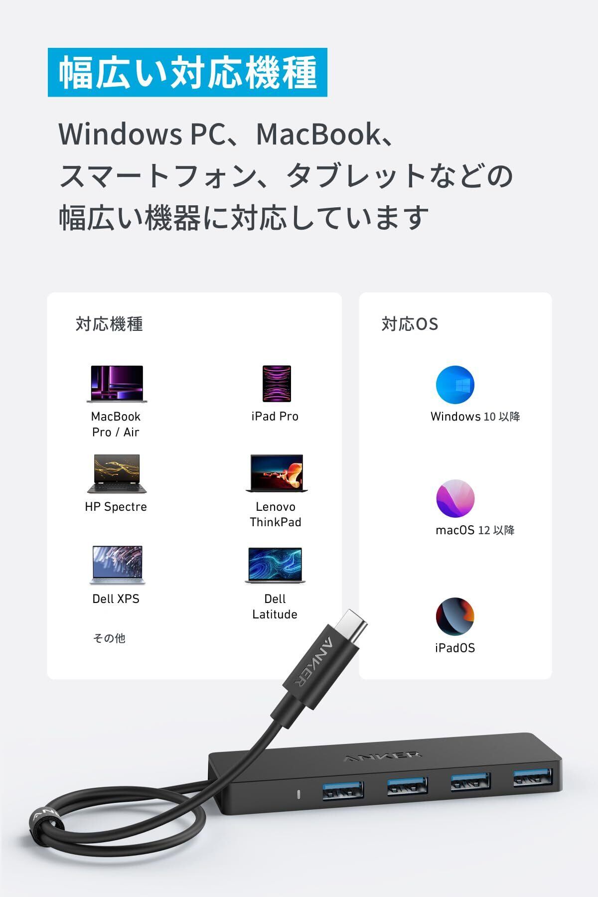 Anker USB-C データ ハブ (4-in-1, 5Gbps) 60cmケーブル 高速データ転送 USB 3.0 USB-Aポート搭載 MacBook/iMac/Surface/Windows