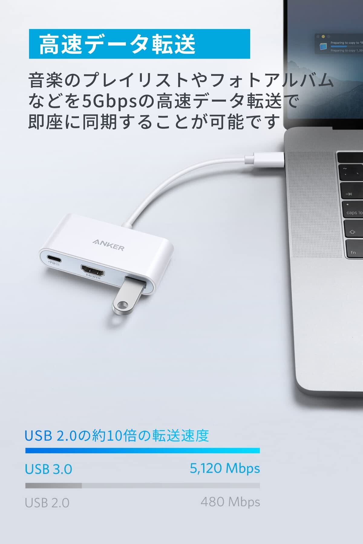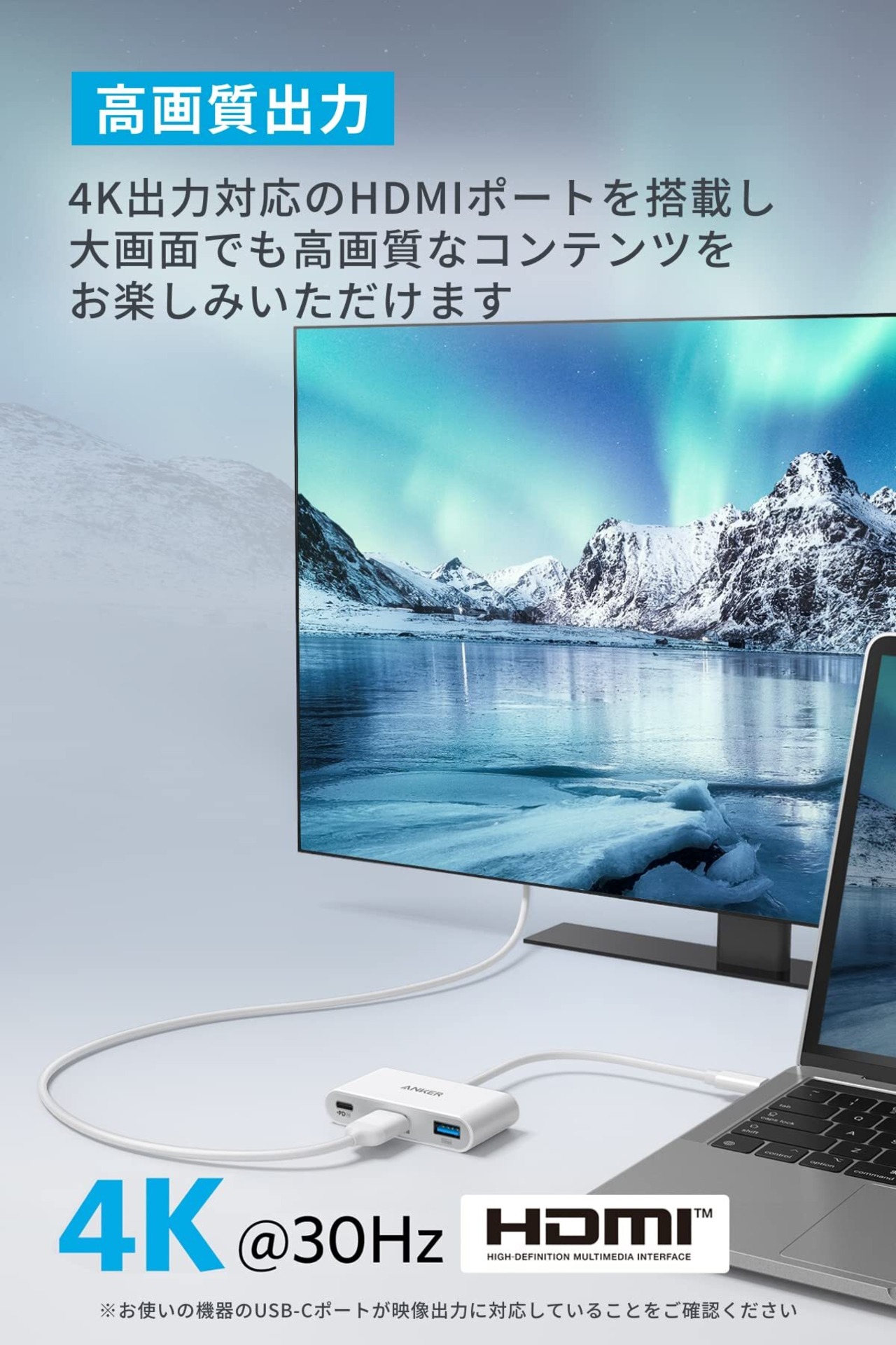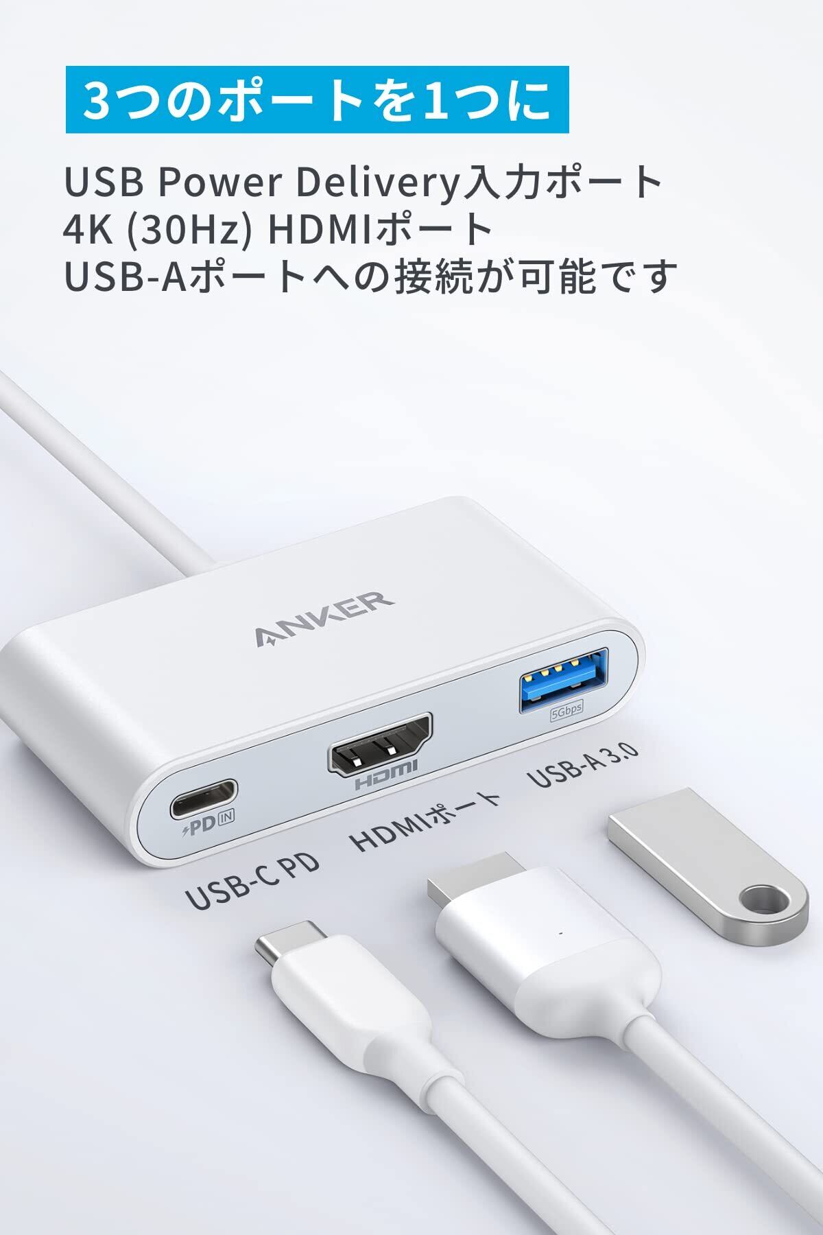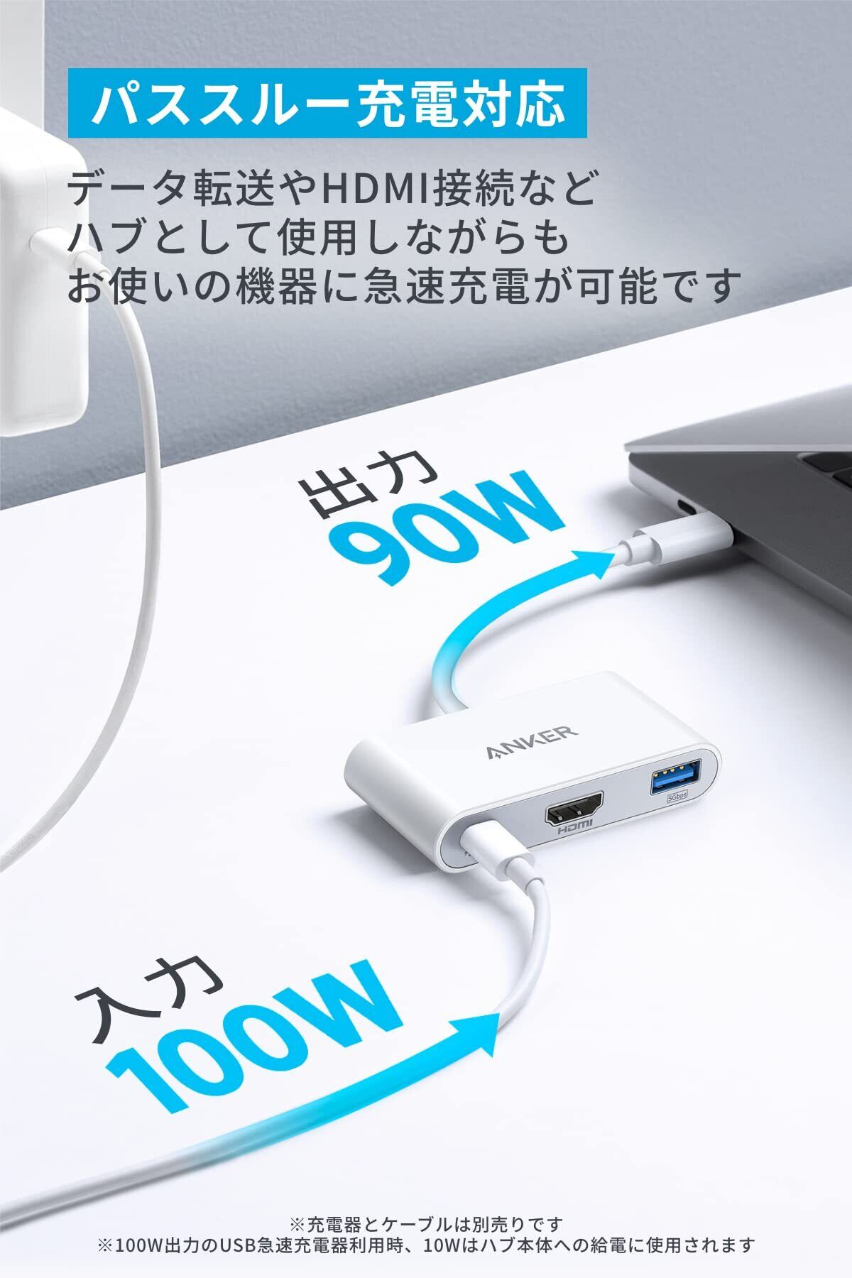 Anker PowerExpand 3-in-1 USB-C ハブ 4K対応HDMI出力ポート 90Wパススルー充電 USB PD対応 USB 3.0ポート iPad Pro MacBook Pro/Air XPS Note 20 Spectre 他対応 (ホワイト)