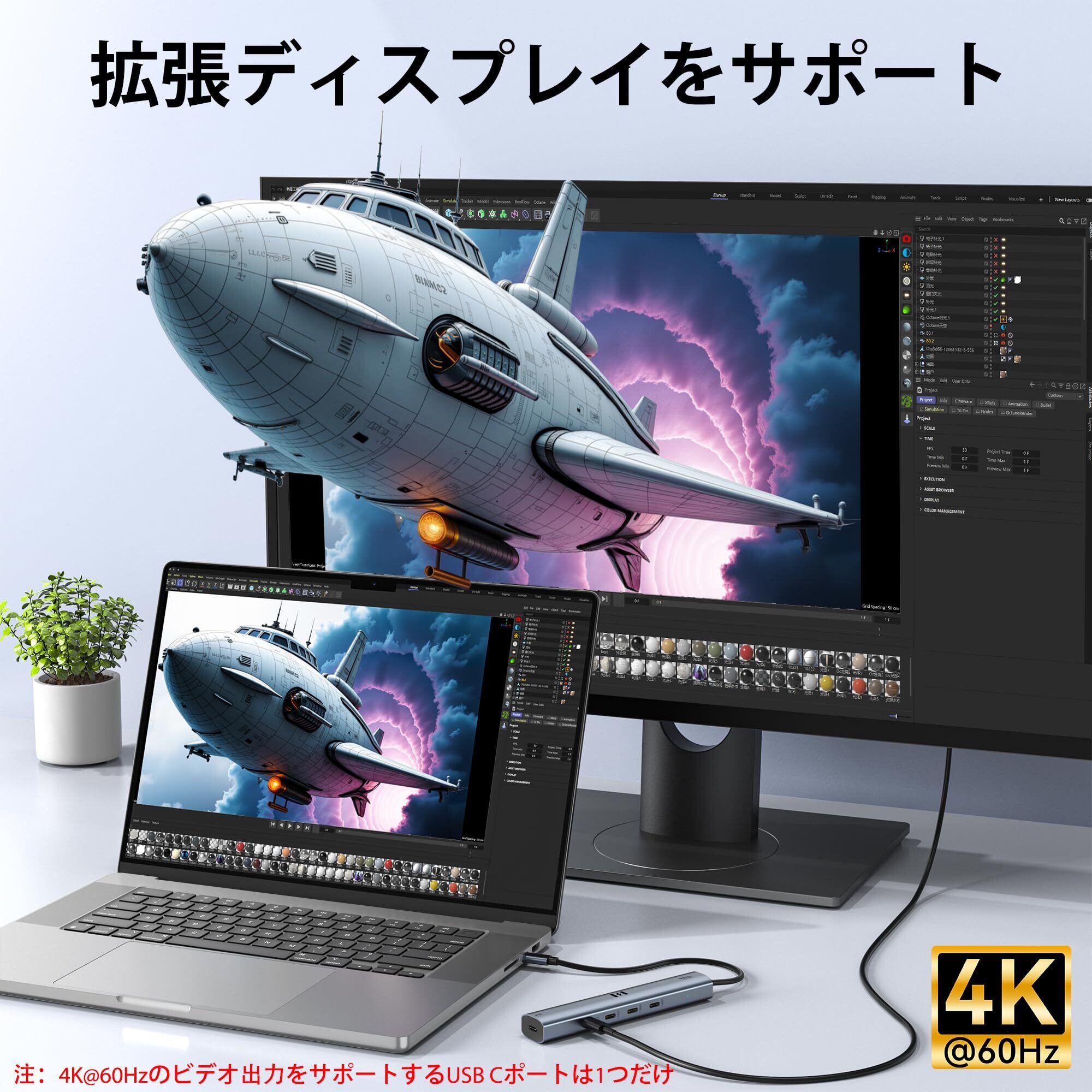 【4K@60Hz USB-C映像出力】:Seloreマルチポートアダプターを使用して、4K@60Hzの超高精細映像を楽しめます。この5ポートUSB-Cハブは、ストリーミング、プレゼンテーション、外部モニター接続に最適で、高解像度コンテンツを投影する必要があるプロフェッショナルやユーザーにとって必須のアイテムです。
