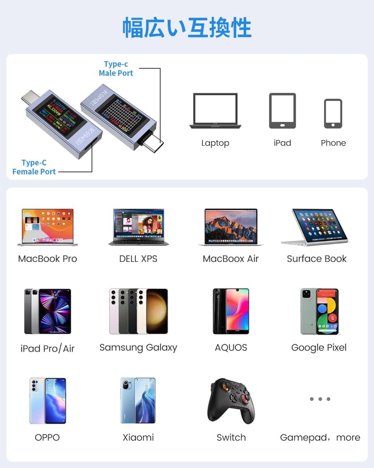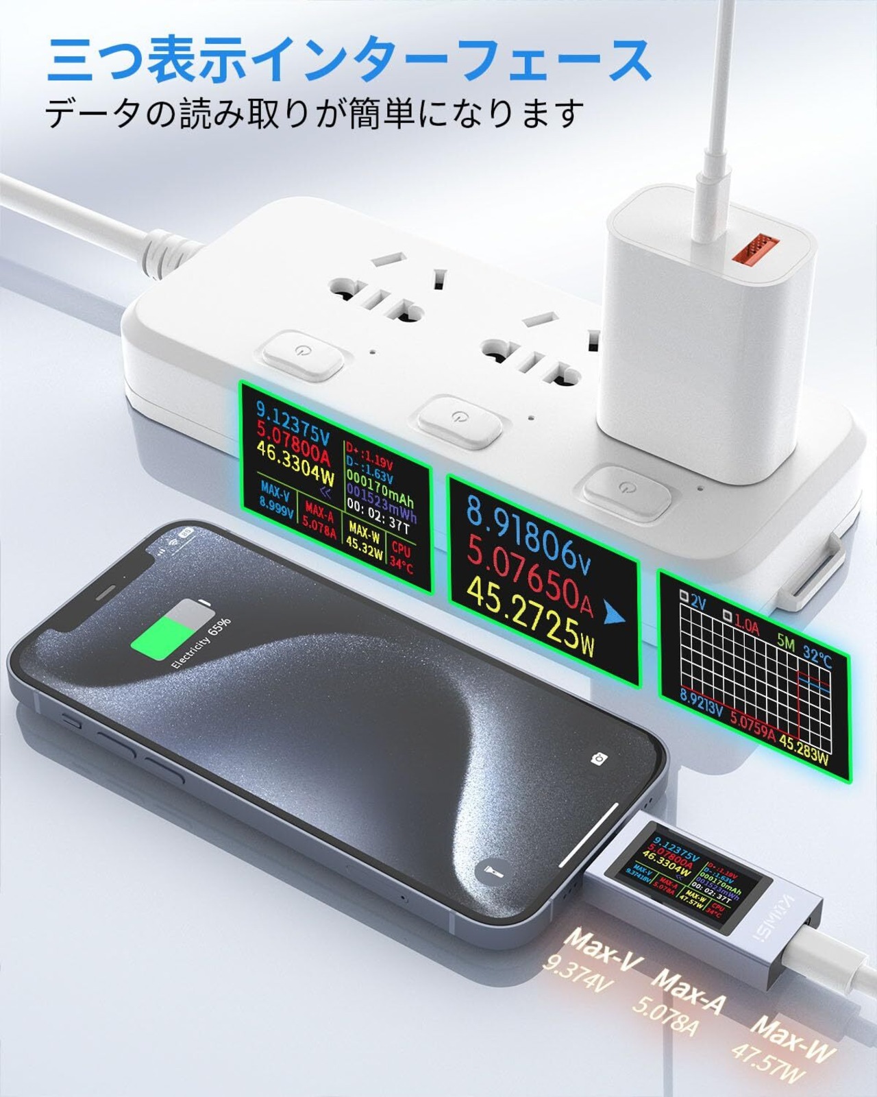 幅広い交換性:このUSBマルチメーターはタブレット、充電器、モバイルバッテリー、ケーブルなどのUSB-Cデバイスを対応でき、スマートチップTI INA226を搭載し、Cポートにほとんど対応でき。