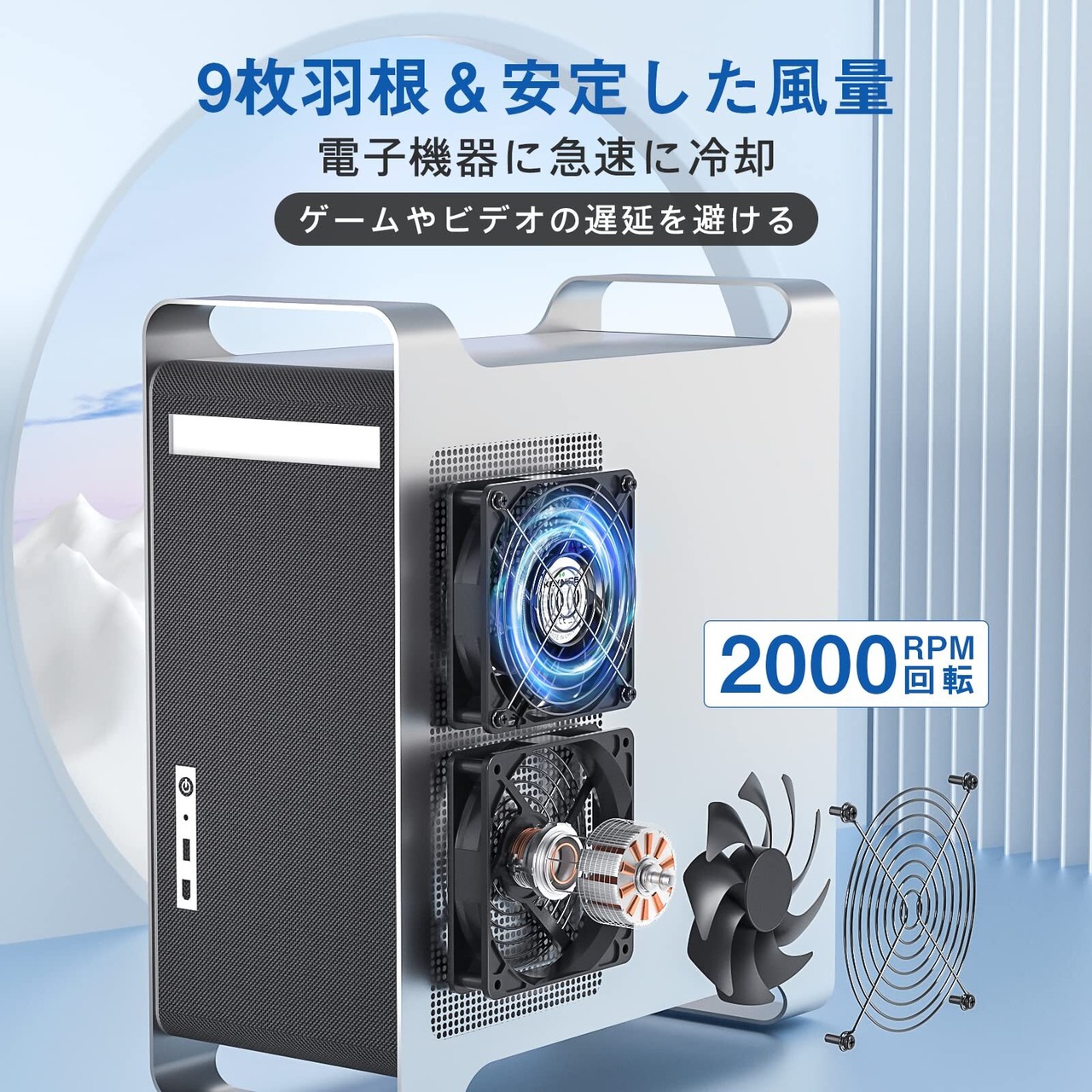 【多用途に対応】外付けHDD、ルーター、AV機器、スマートフォン、PC(デスクトップ・ノートPC)、ゲーム機(PS4など)の冷却に最適な設計で、熱暴走のリスクを軽減します。また、卓上扇風機としてや車中泊、屋外での使用、室内の空気循環など、様々なシチュエーションにも活躍します。