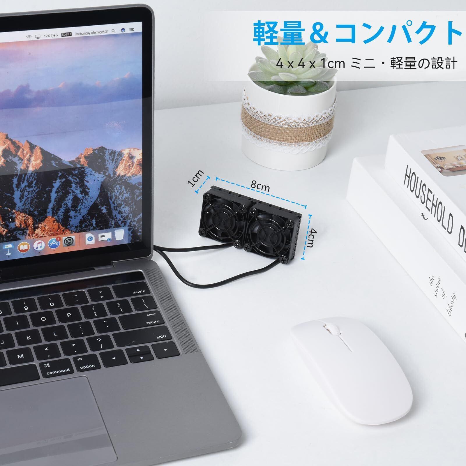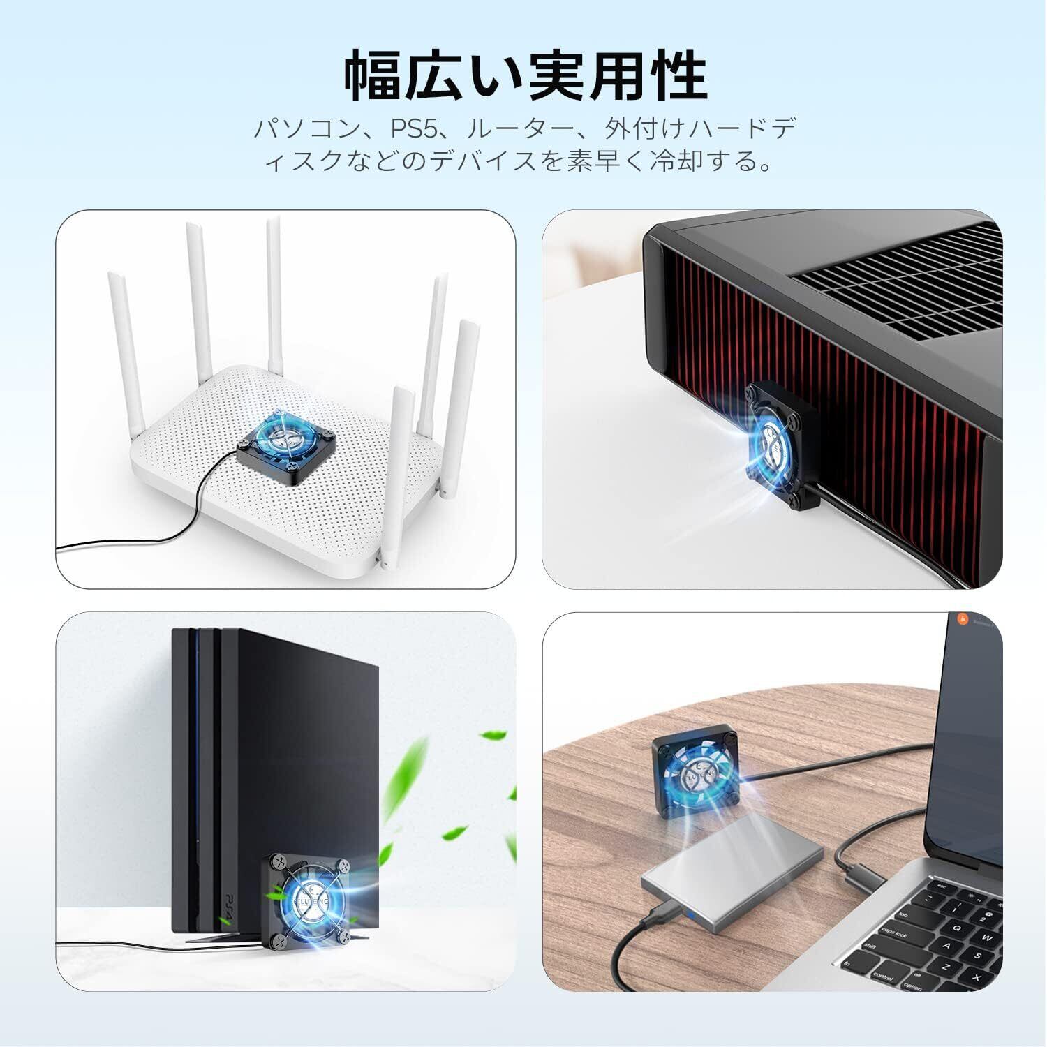 【幅広い実用性】W8×D4cm USBファンはルーター、HDDなど色んな電子機械の放熱にも適しています。 USB端子を備えた機器に接続するだけで、配線の手間をかけずに簡単に冷却できます。パッケージ内容:USBファン 4cm(ヒートシンク搭載)、熱伝導シート×1枚