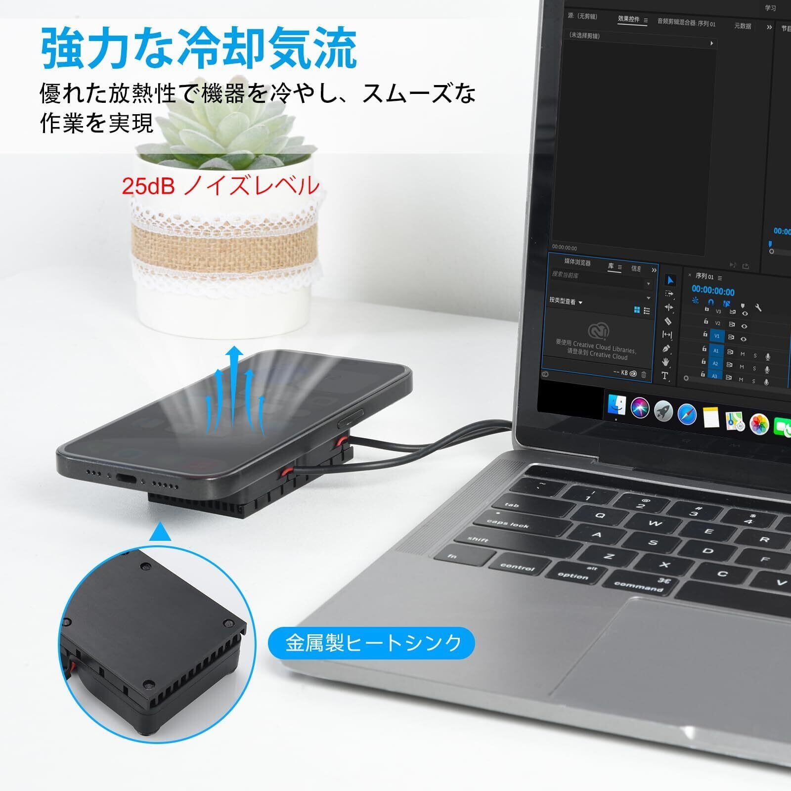 【放熱性UP】USB扇風機の底部に金属ヒートシンクを追加し、底部の空気循環を強化し、放熱目的でデバイスの温度を下げます。 また、パッケージにはシリコンヒートシンクが付属しており、使用時に効果的に放熱出来ます。