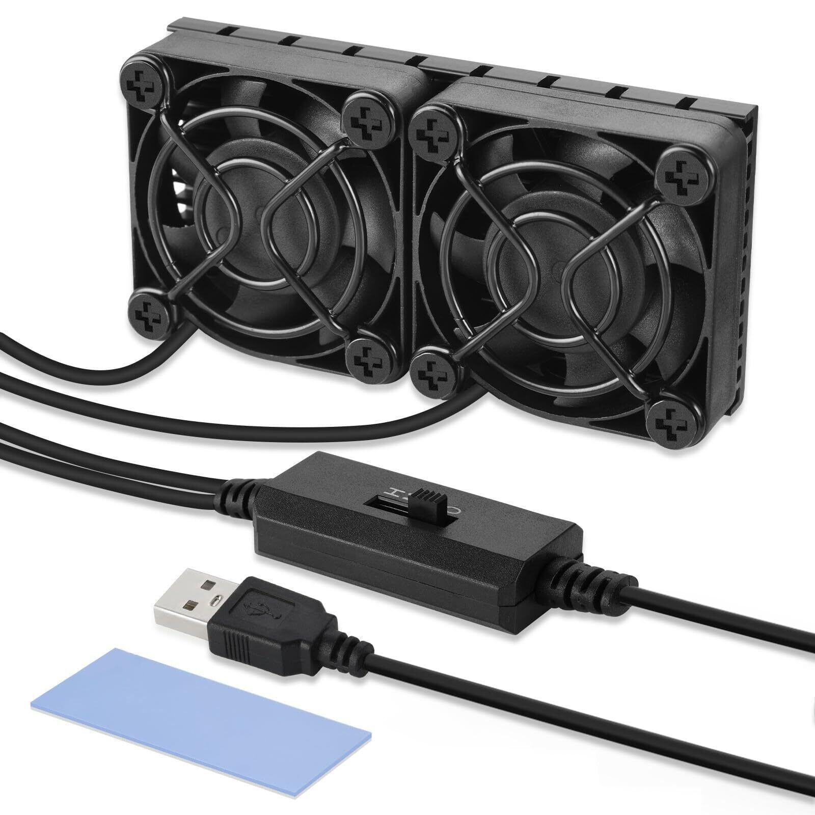 ELUTENG 小型ファン 4cm 3段階風量調節 USBファン 40mm アルミヒートシンク付き 冷却クーラー 薄型 8×4cm 強力冷却 パソコン 電子デバイス 放熱板 5V 長時間稼働可