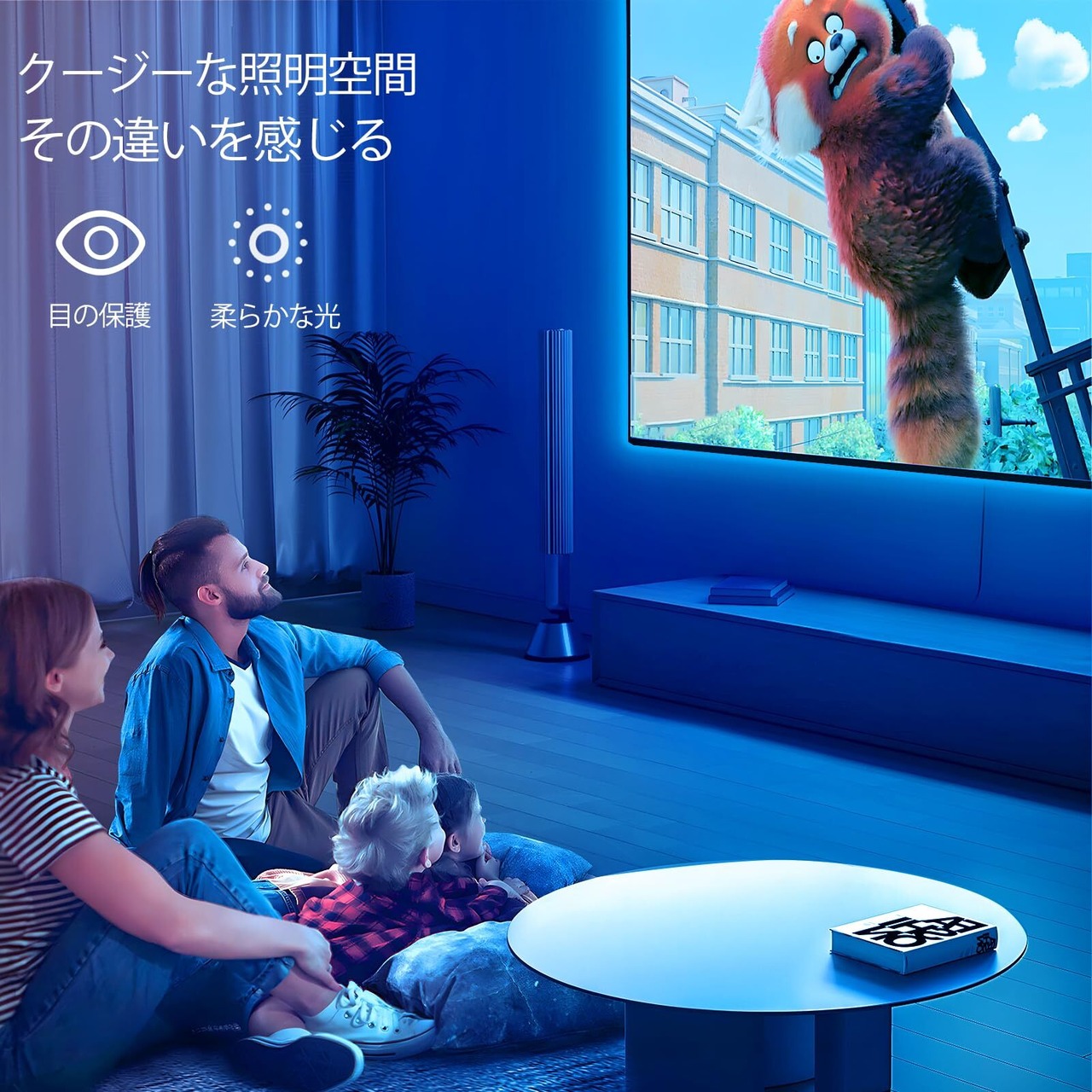 【目の疲れを軽減】ストリップライトは32~65インチのテレビに適用できます。テレビにテープライトを貼ることによって明るいテレビと暗い部屋の間のコントラストを下げ、目の疲れを軽減、頭痛を防ぎます。