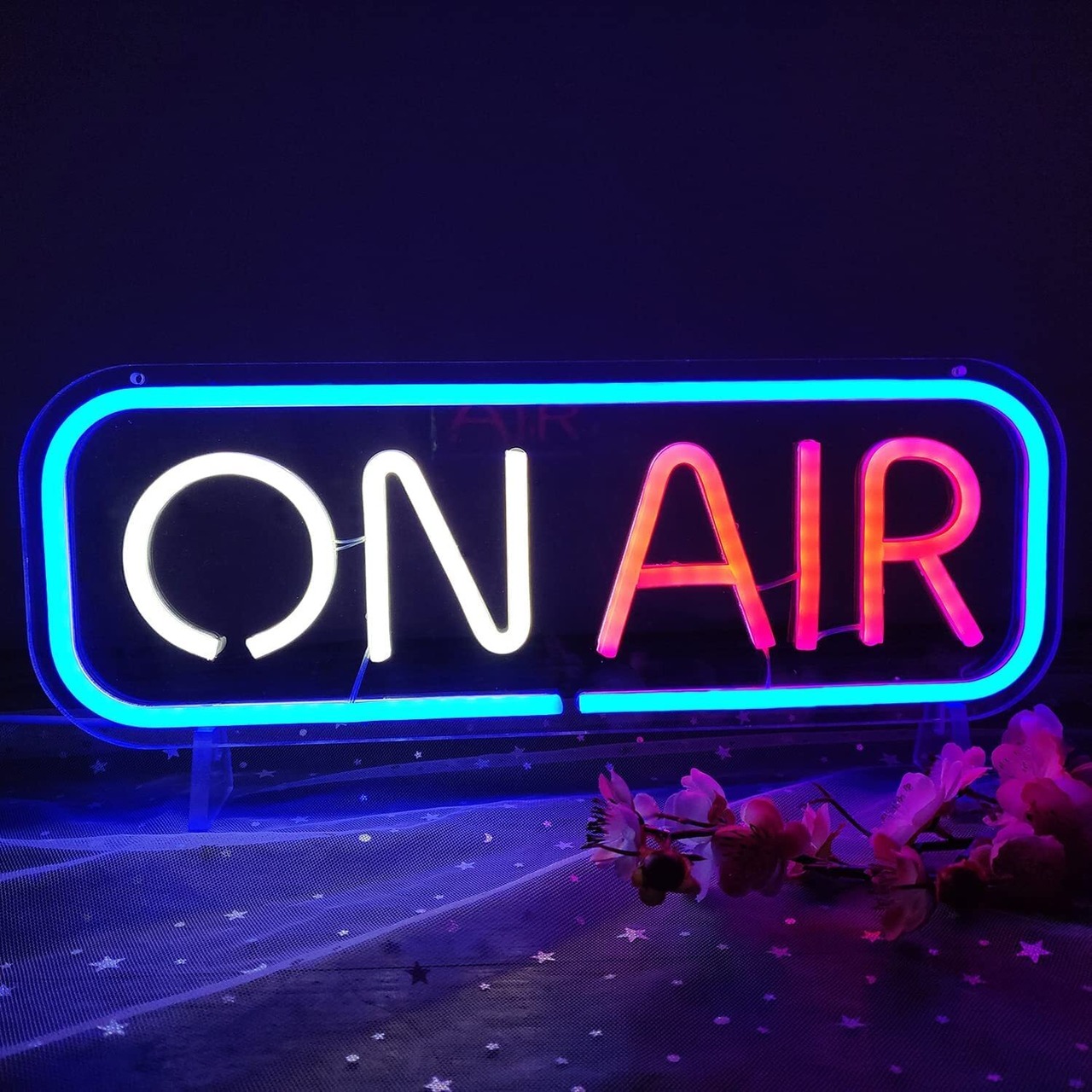ON AIRネオンライト レターマイクLEDネオンサイン スタジオ ゲームルームの壁の装飾 放送室 ボーイズルームティーンズ ギフト 青&白&赤