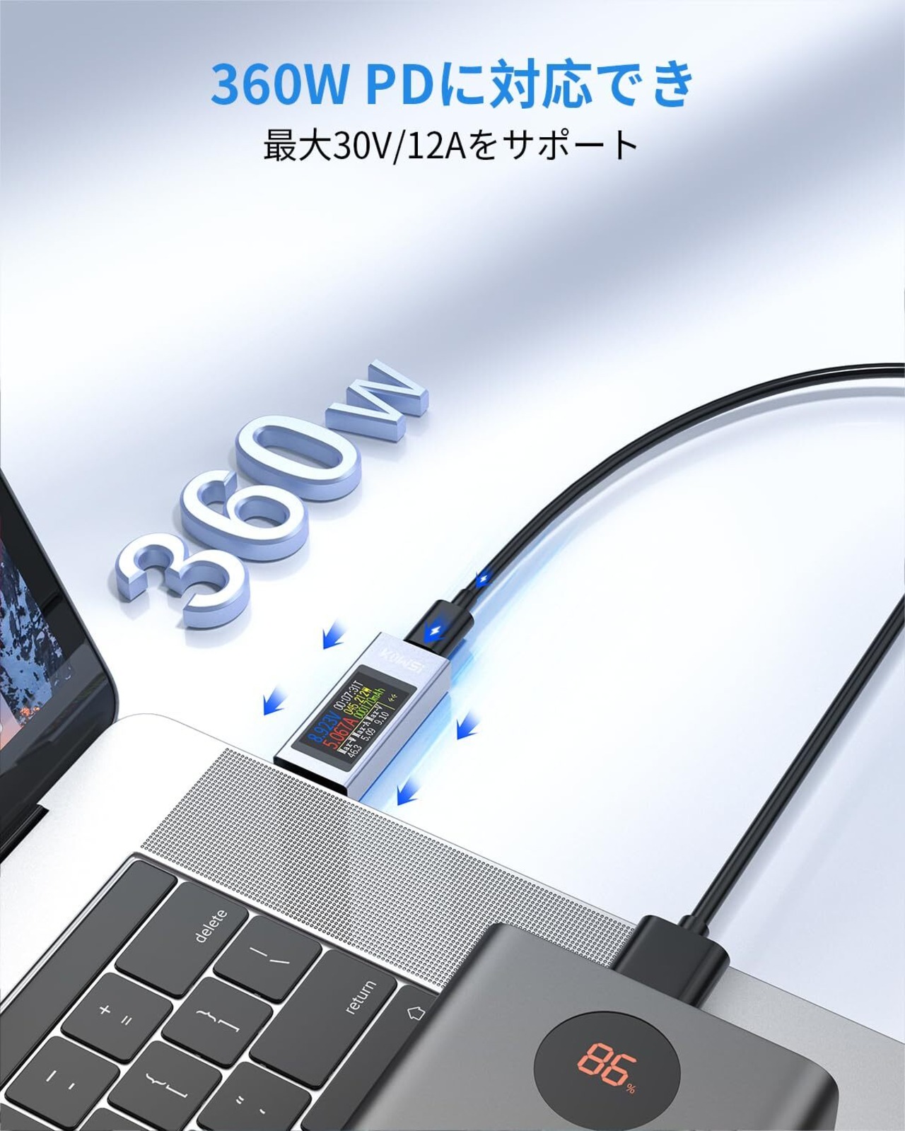 幅広い交換性:このUSBマルチメーターはタブレット、充電器、モバイルバッテリー、ケーブルなどのUSB-Cデバイスを対応でき、スマートチップを搭載し、Cポートにほとんど対応でき。